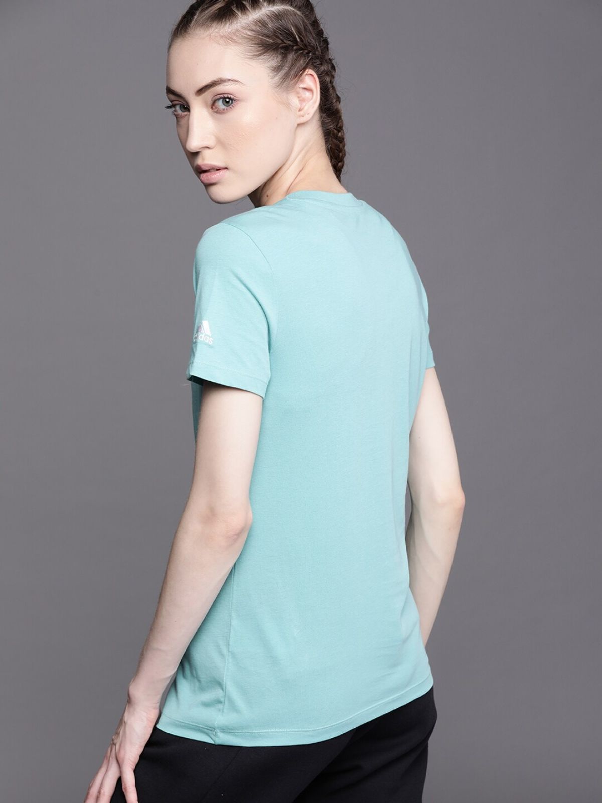 *Check the latest price and availability on the official store.ADIDAS Women Blue Brand Logo Printed Loungewear Essentials Slim Logo Pure Cotton Sustainable T-shirt