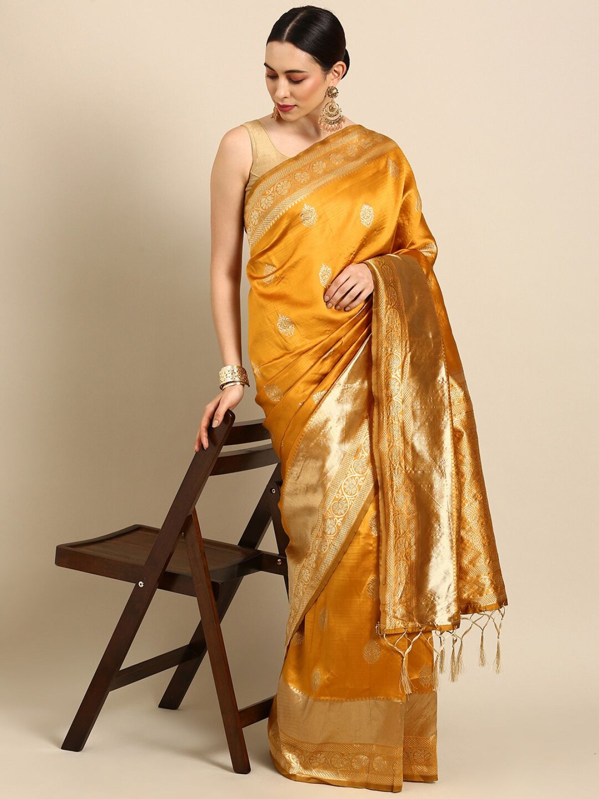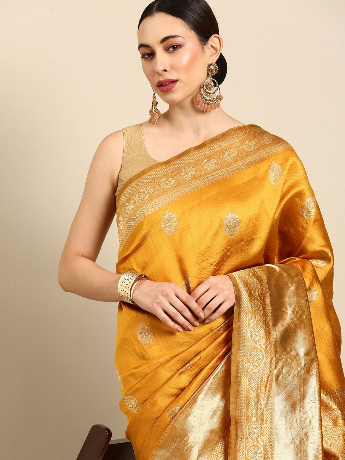 *Check the latest price and availability on the official store.Anouk Mustard Woven Design Zari Silk Blend Banarasi Saree