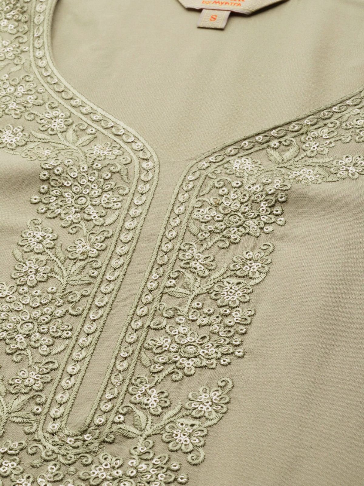 Anouk Olive Green Ethnic Motifs Yoke Design Kurta with Palazzos & With Dupatta