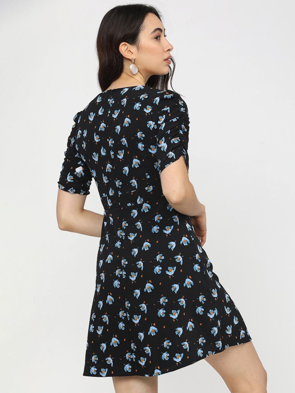 Black Floral Crepe A-Line Dress (Tokyo Talkies)