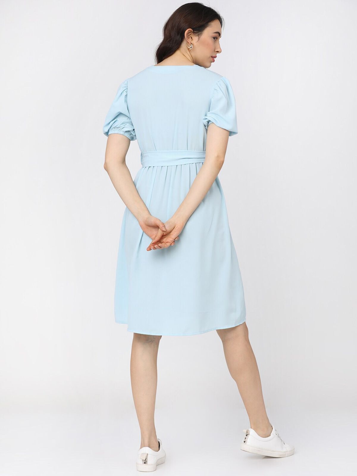 - Blue solid fit & flare dress