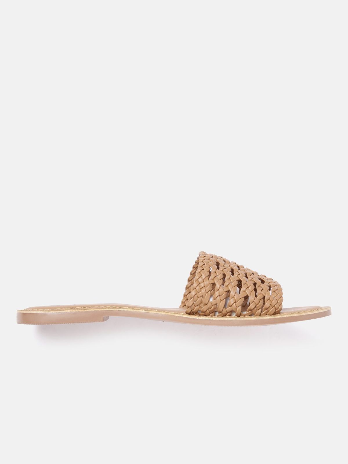 Carlton London Women Nude-Coloured Woven Design Open Toe Flats