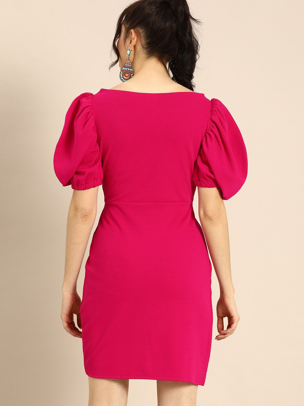 *Check the latest price and availability on the official store.Charming Fuchsia Pink Power Shoulders Tulip Hem Wrap Dress (Athena)