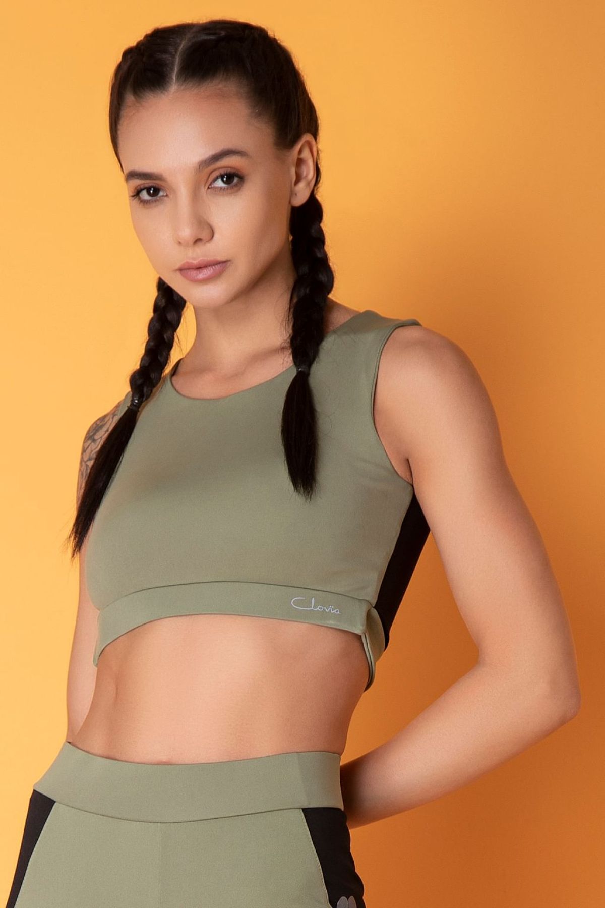 *Check the latest price and availability on the official store.Comfort-Fit Active Colourblock Active Crop Top in Sage Green with Cut-Out Detail on Back