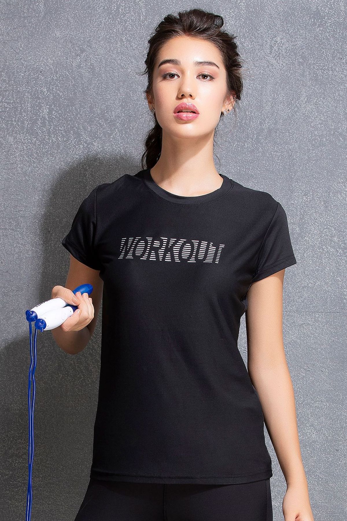 - Black text print activewear T-shirt crafted with smooth polyester fabric that wicks away the sweat.