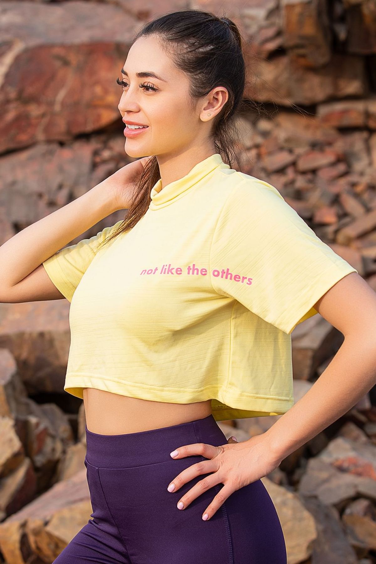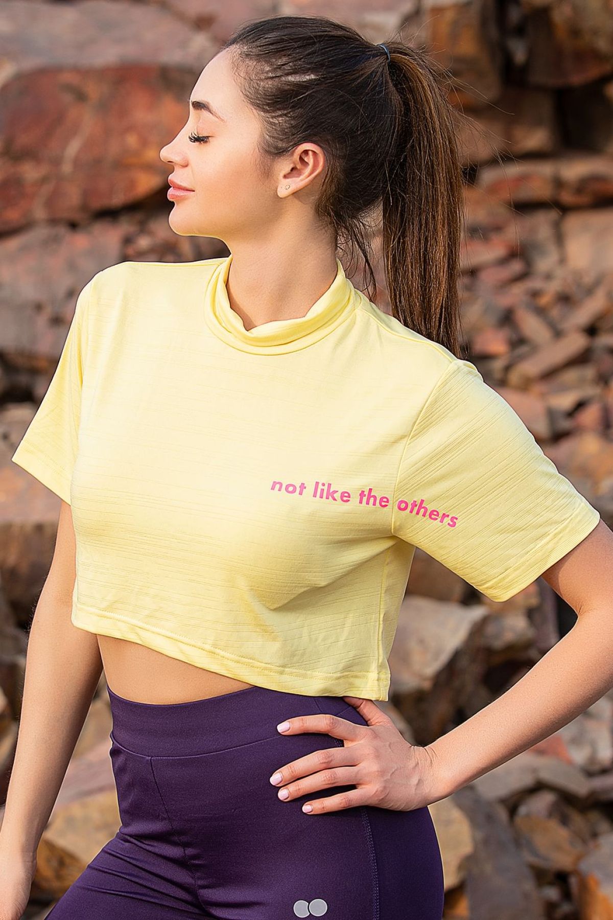 *Check the latest price and availability on the official store.Comfort Fit Text Print Turtleneck Active Crop Top in Yellow