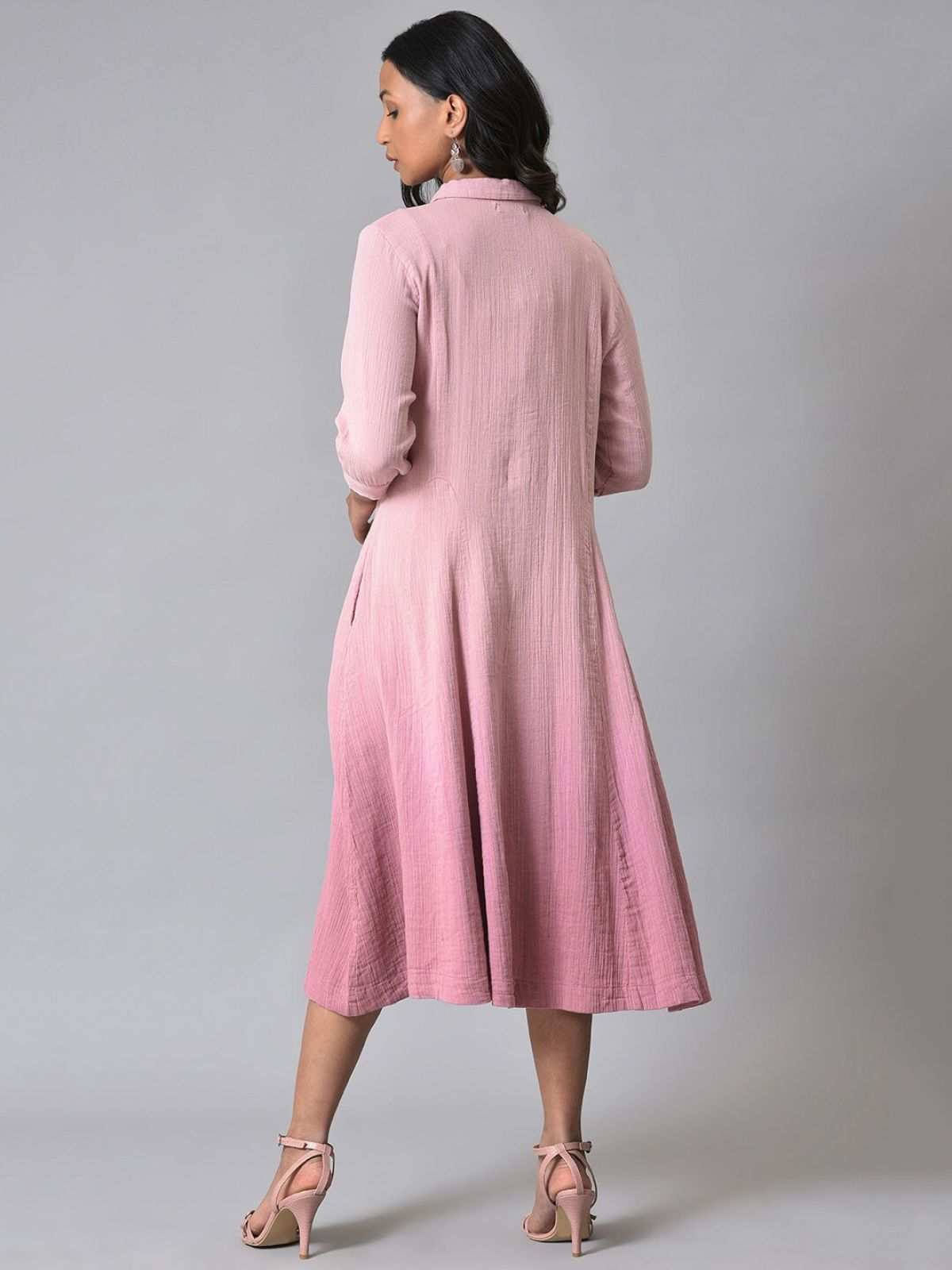 Dyed Shirt Collar A-Line Midi Dress (W)
