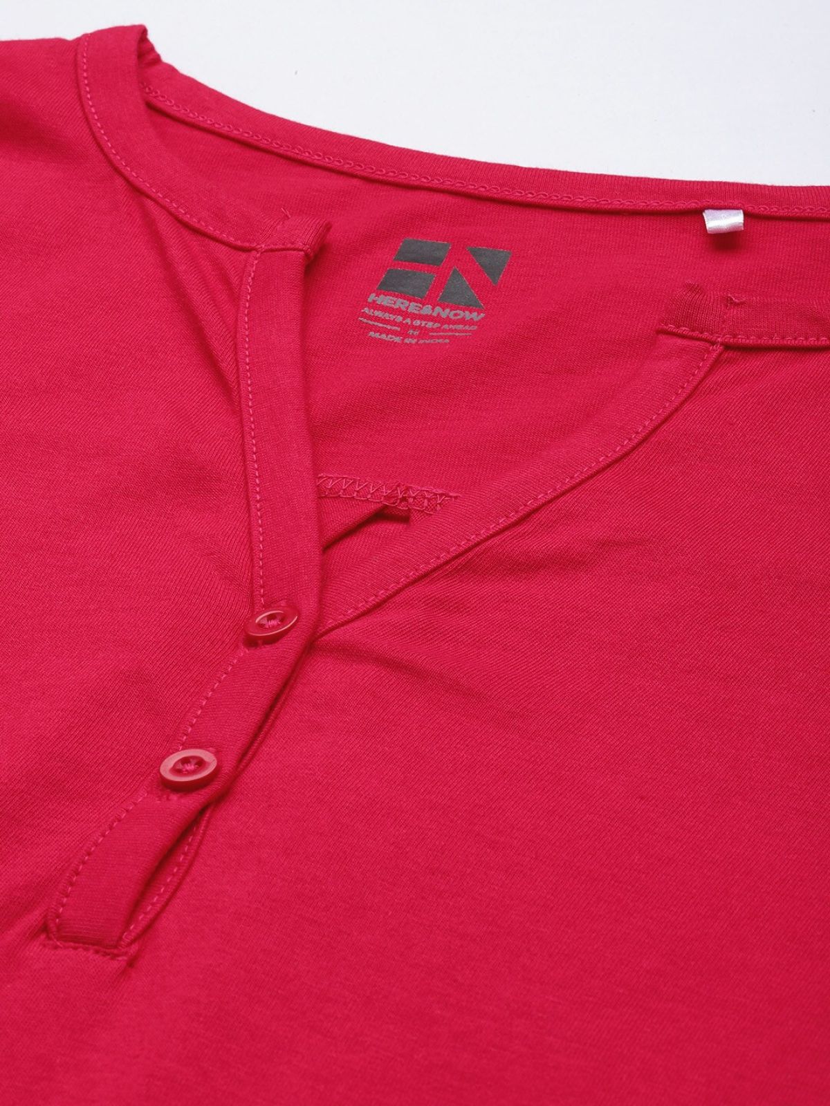 HERE&NOW Women Red Floral Cotton Pure Cotton Night suit