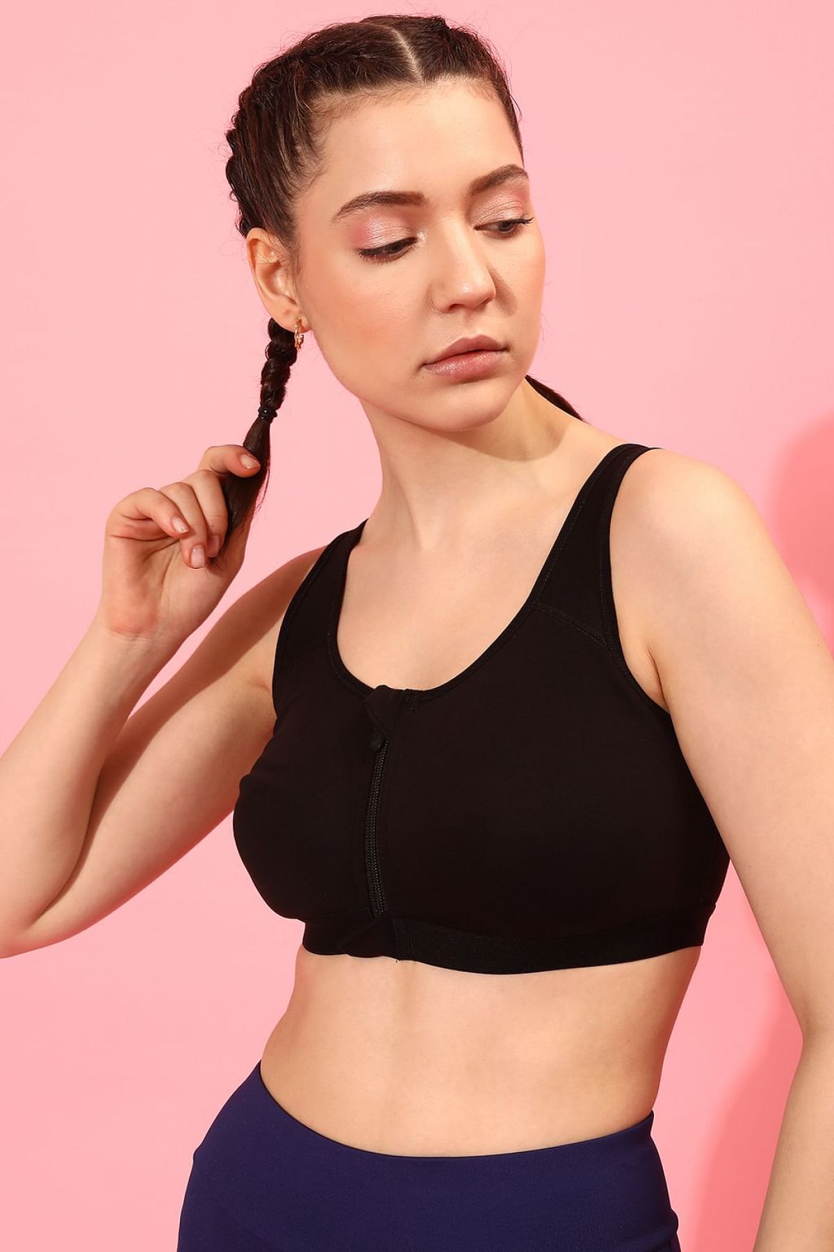 *Check the latest price and availability on the official store.High Impact Lightly Padded Spacer Cup Active Sports Bra in Black with Front Zipper - Cotton