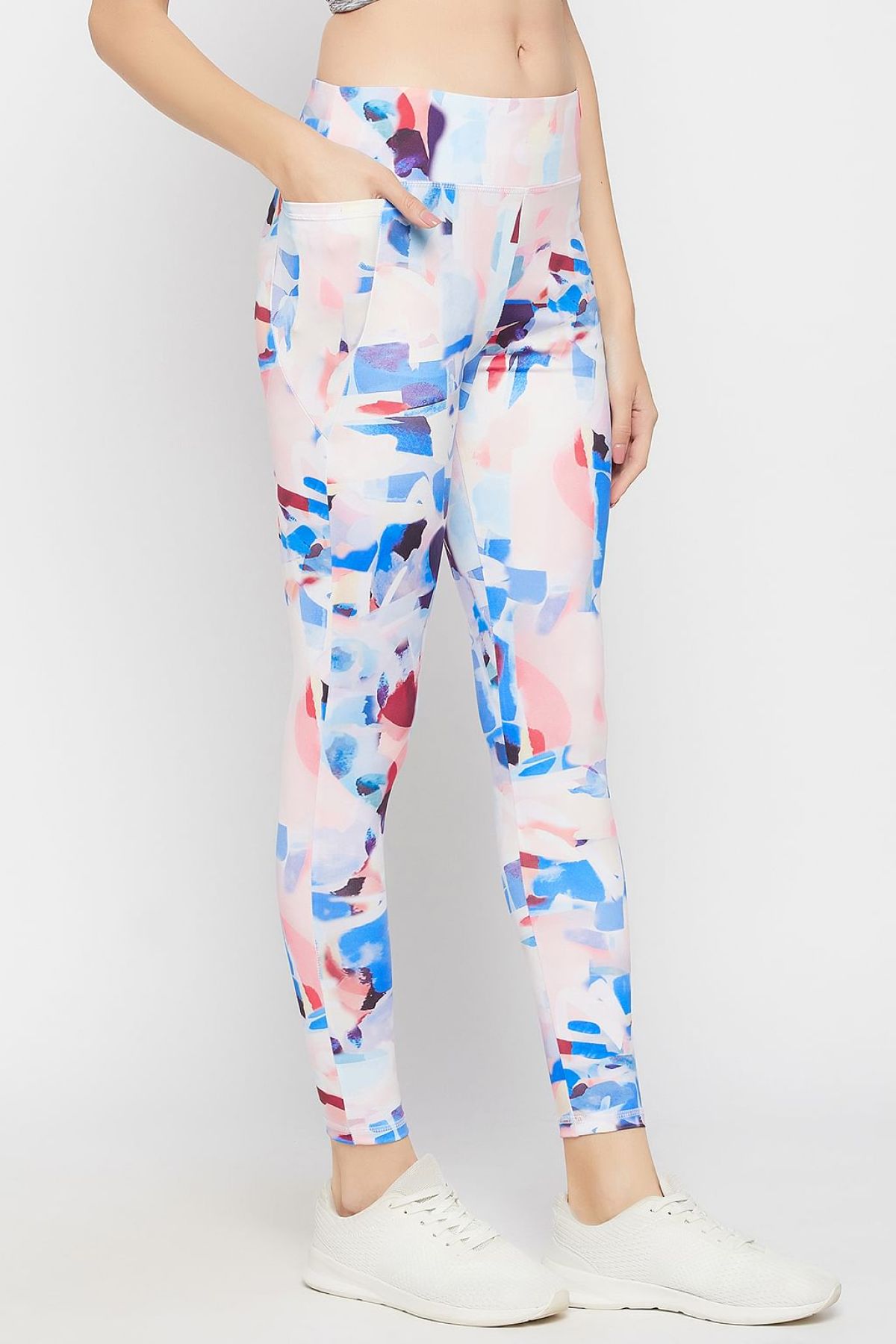 High-Rise Abstract Print Active Tights in Multicolour with Side Pocket
