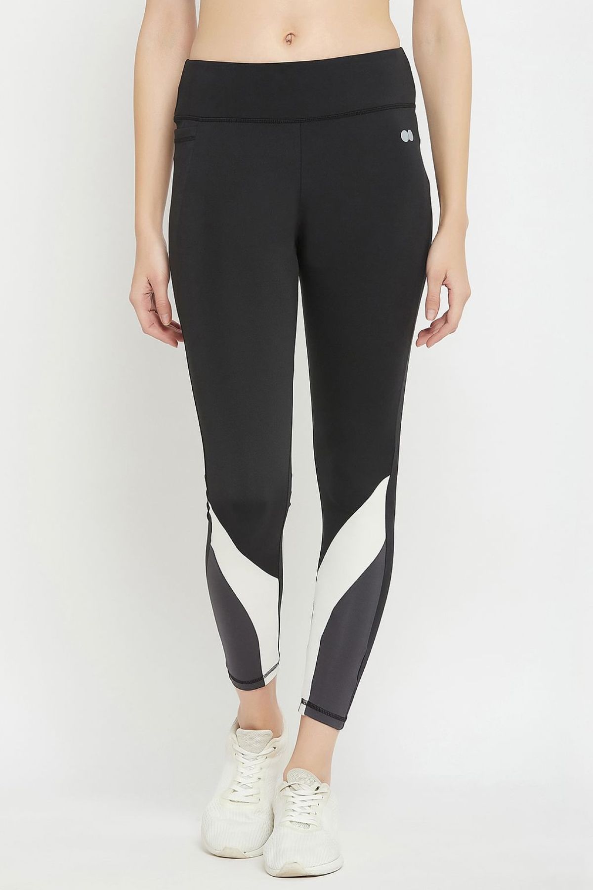 High Rise Active Tights in Black with Contrast Panels & Side Pocket
