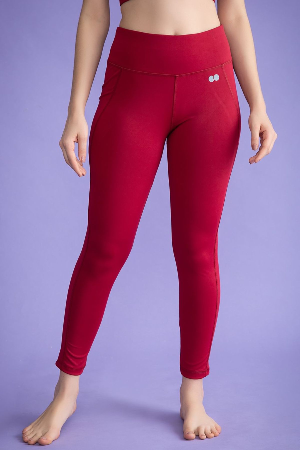 - High rise maroon tights crafted with soft moisture wicking polyamide fabric.