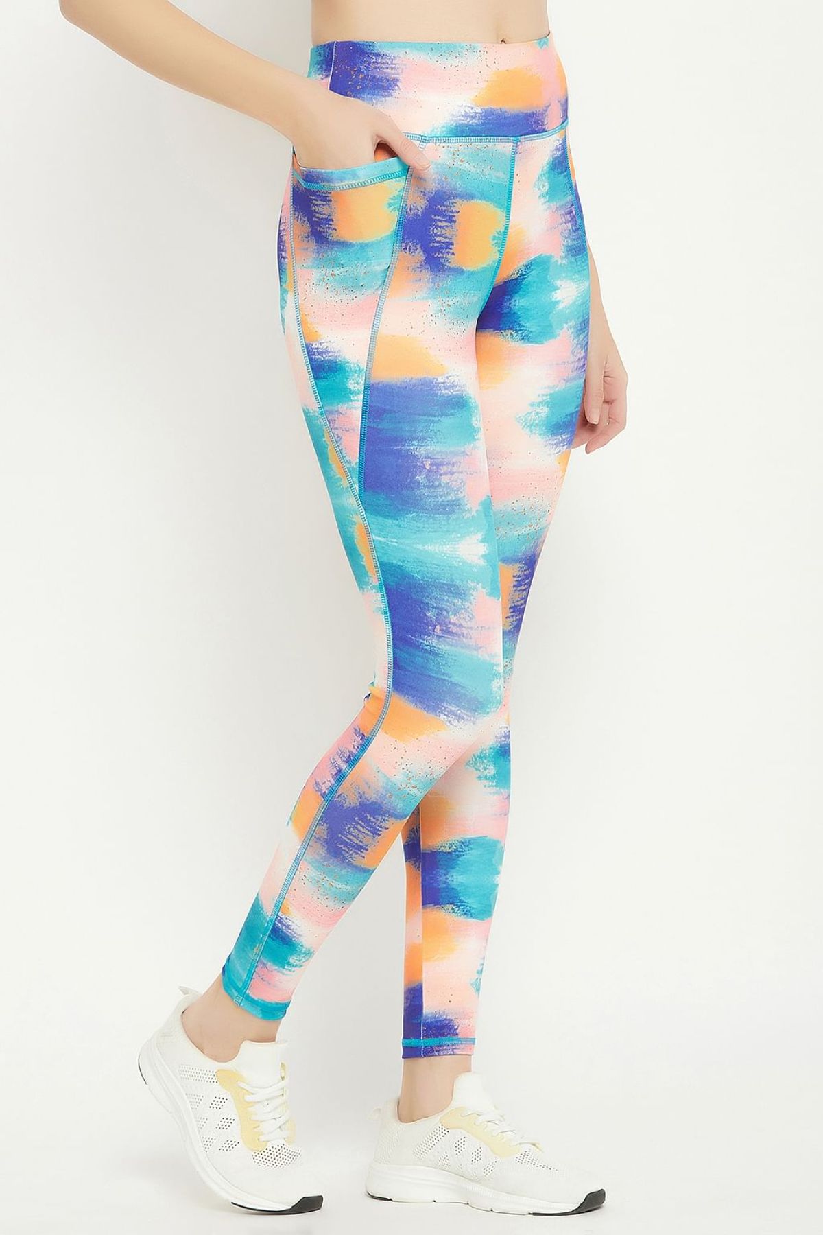 High Rise Brushstroke Print Active Tights in Multicolour with Side Pocket