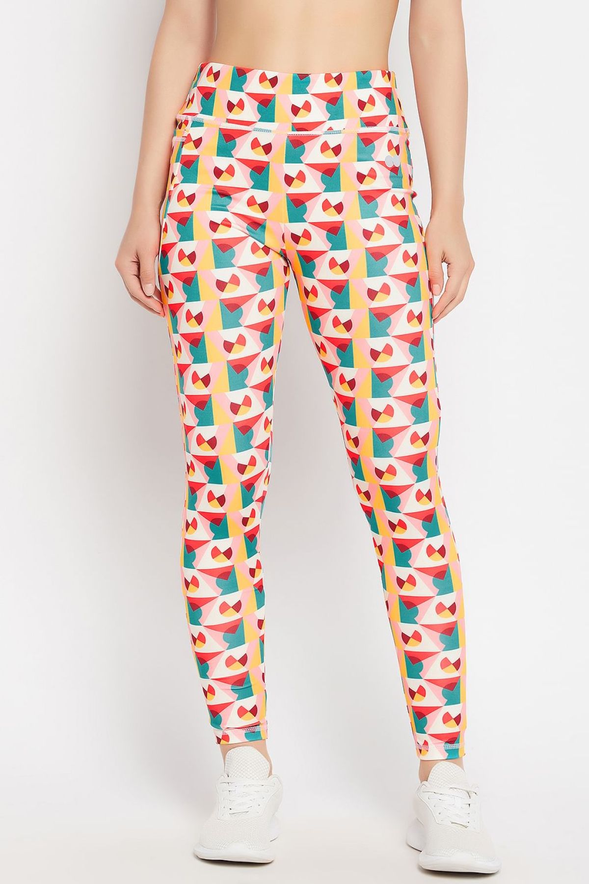 High Rise Geometric Print Active Tights in Multicolour