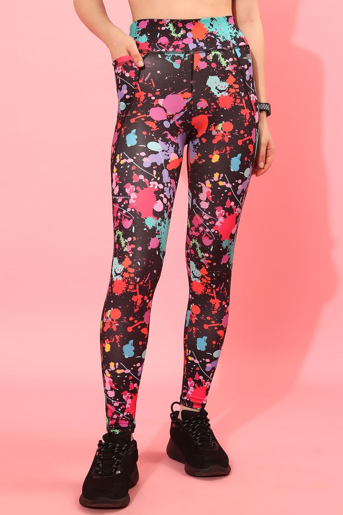 *Check the latest price and availability on the official store.High Rise Paint Splatter Print Active Tights in Black with Side Pocket