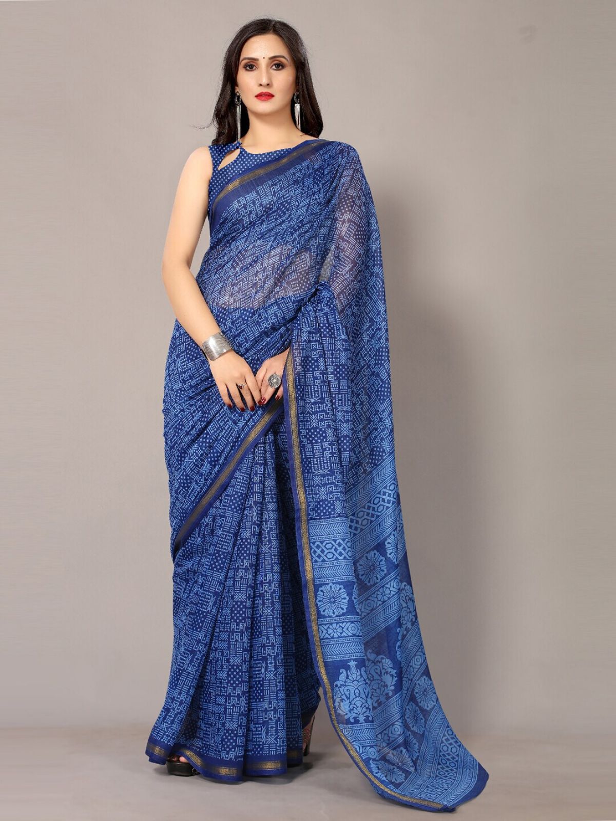 *Check the latest price and availability on the official store.HRITIKA Navy Blue & Golden Zari Block Print Saree