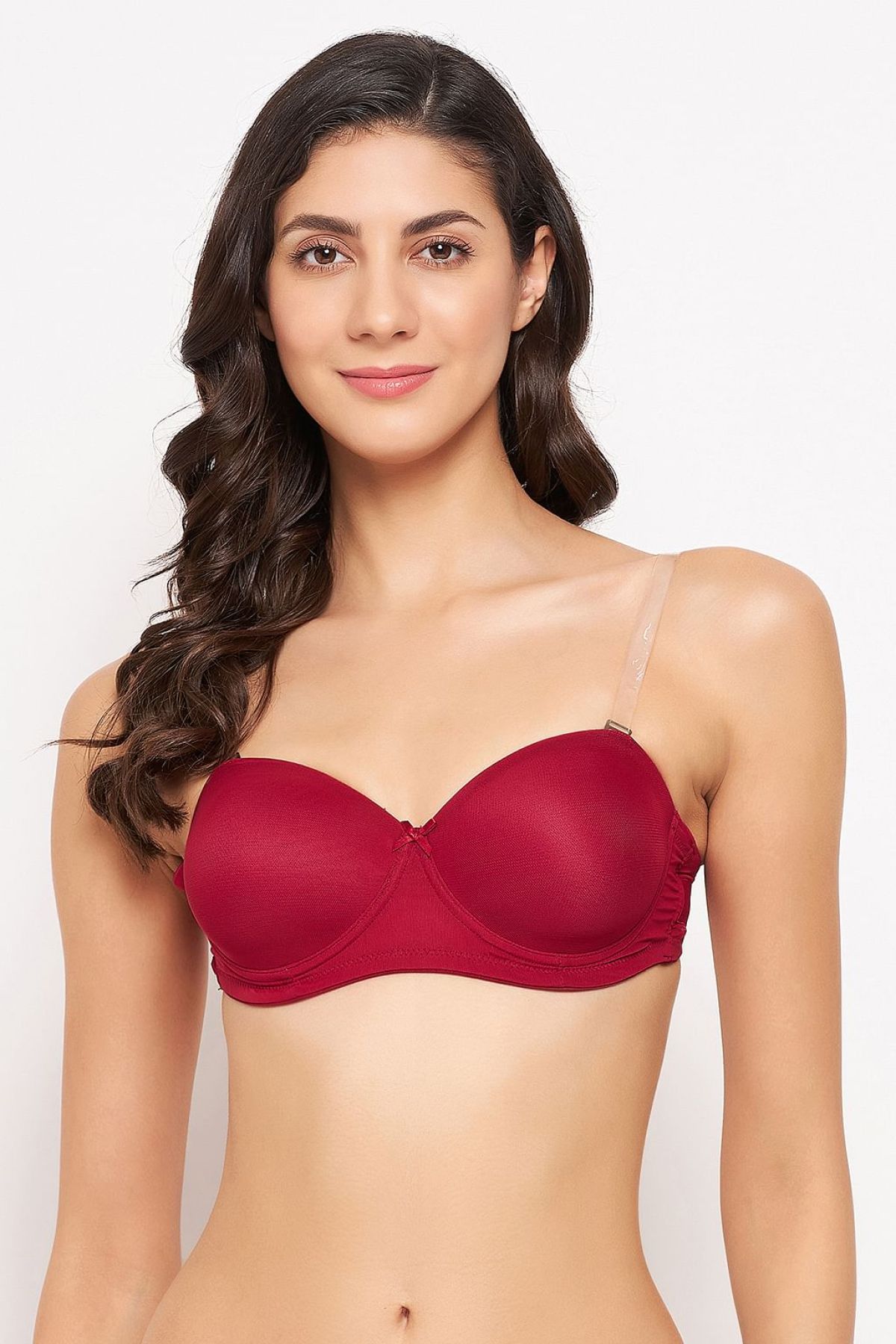 *Check the latest price and availability on the official store.Invisi Padded Underwired Full Cup Strapless Balconette Bra in Maroon with Transparent Straps & Band