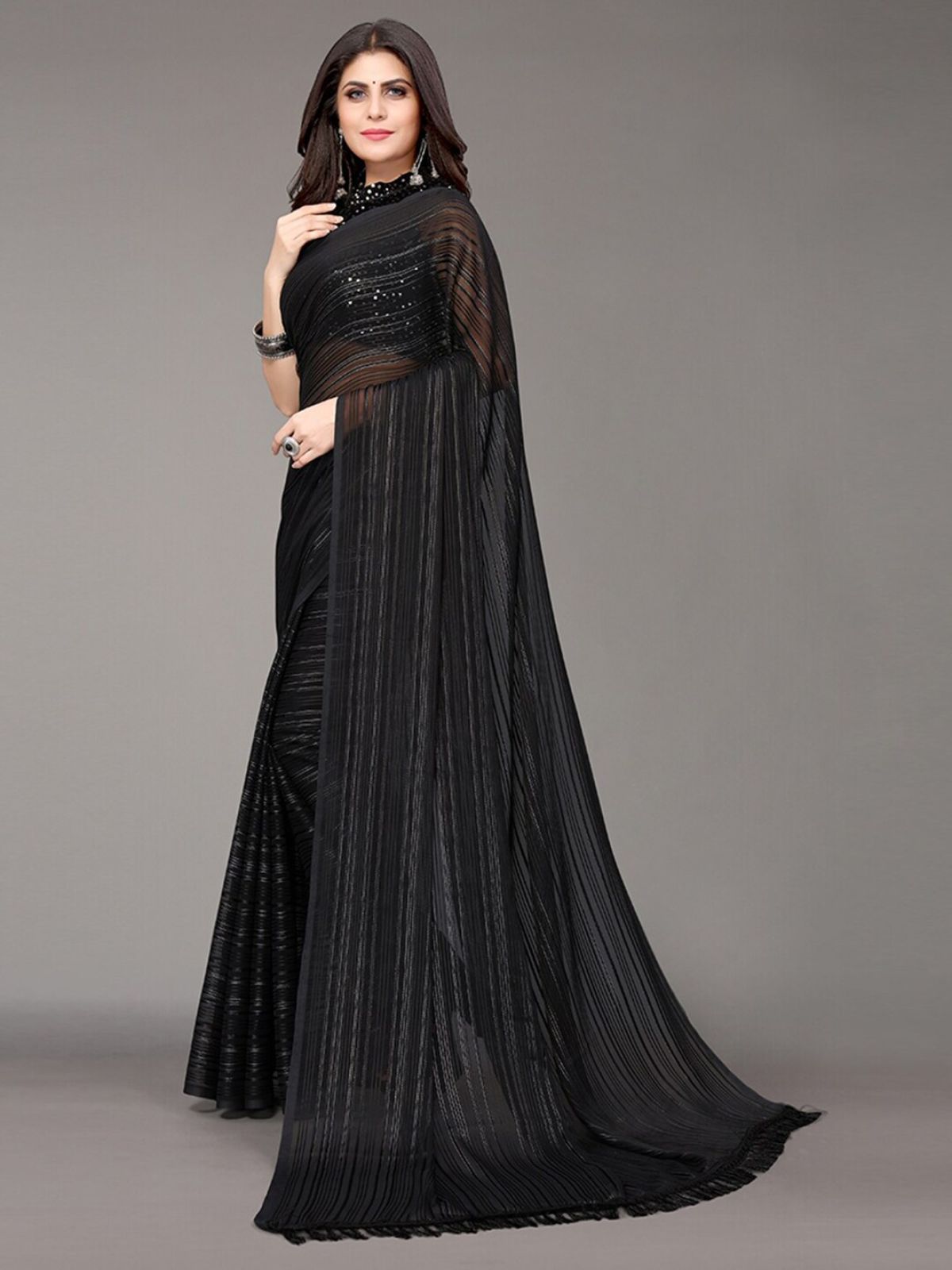 *Check the latest price and availability on the official store.KALINI Black Striped Satin Saree