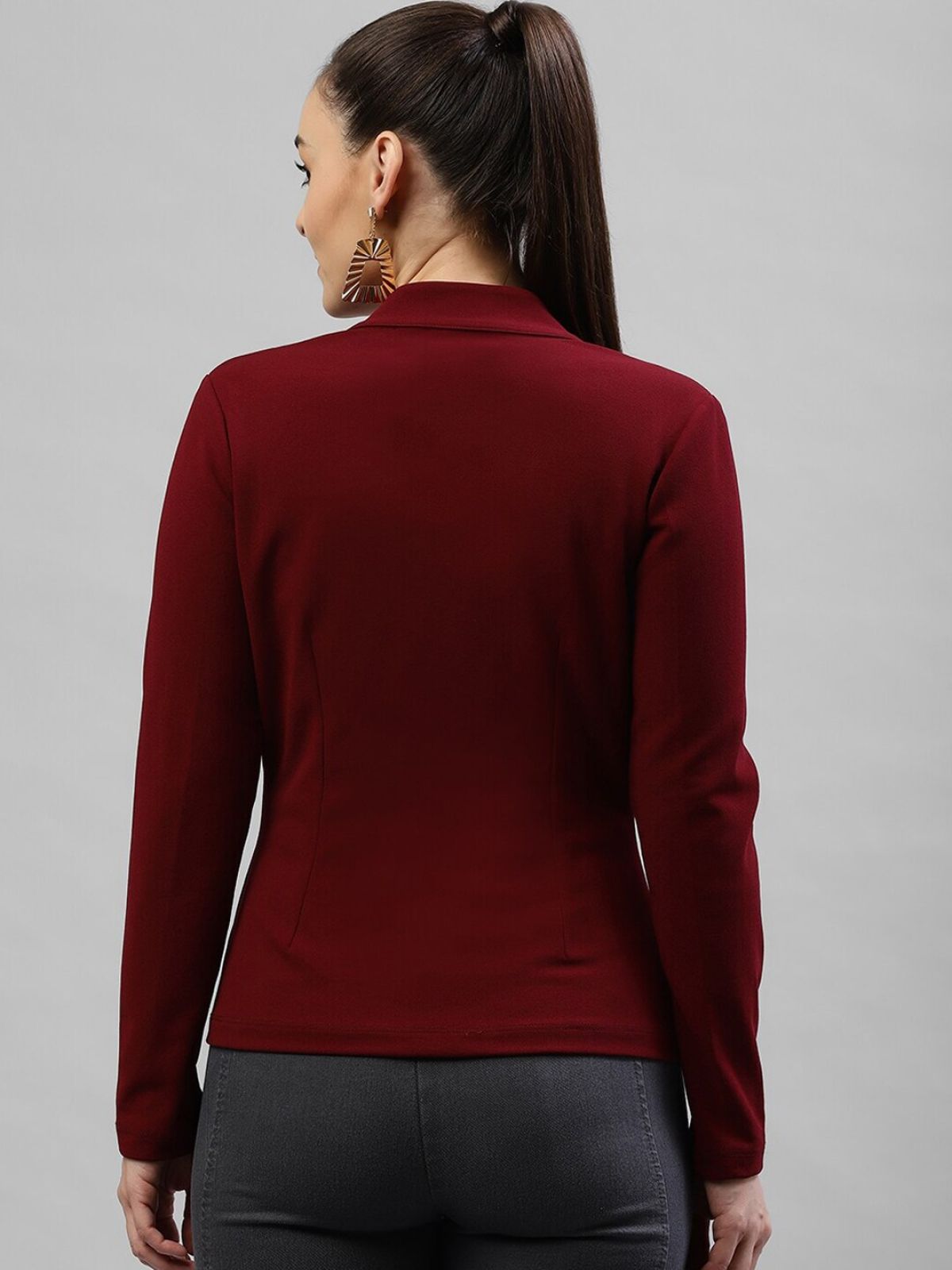 KASSUALLY Women Burgundy Solid Single-Breasted Canton Blazer