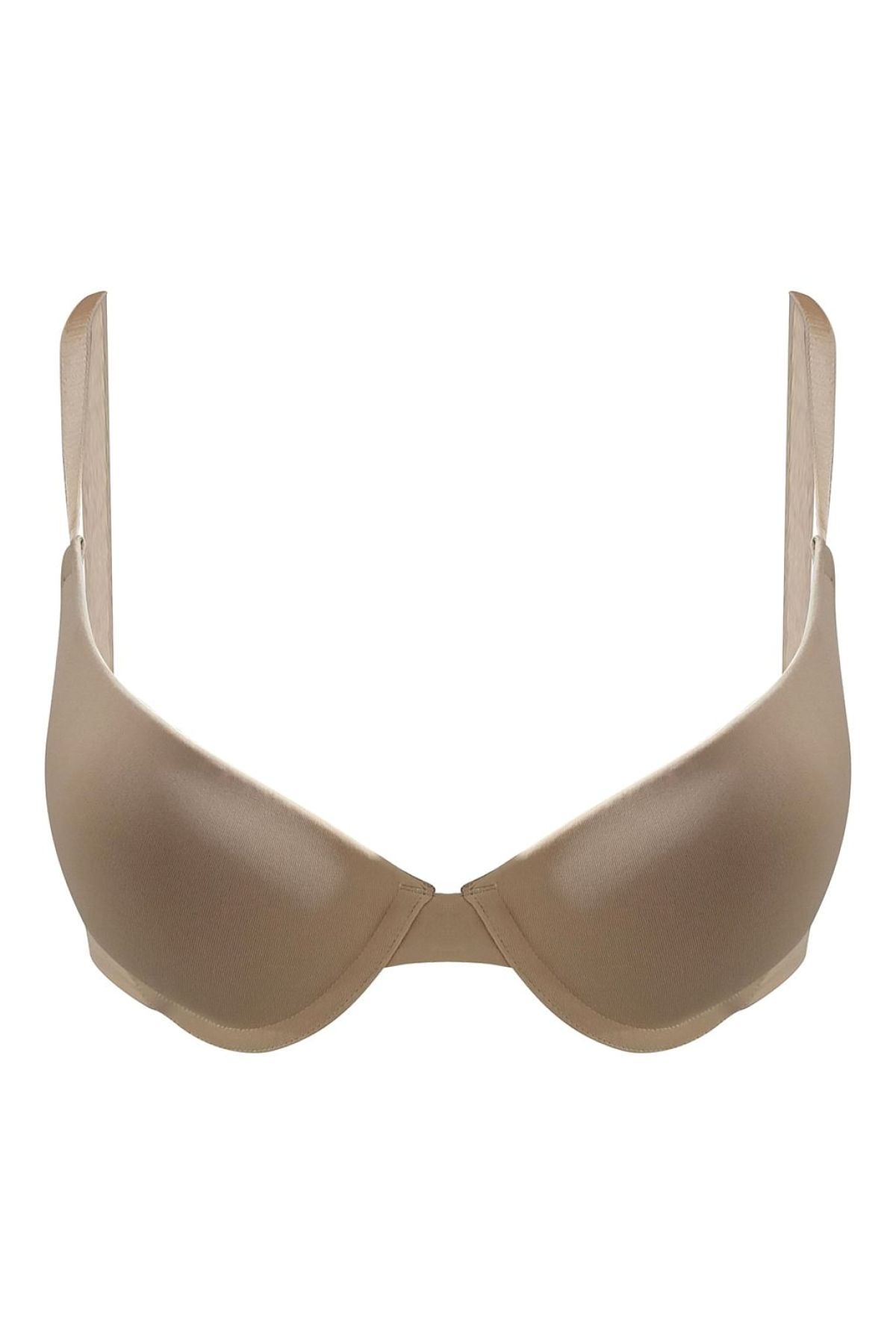 - Nude coloured bra in balconette style crafted with smooth polyamide fabric.