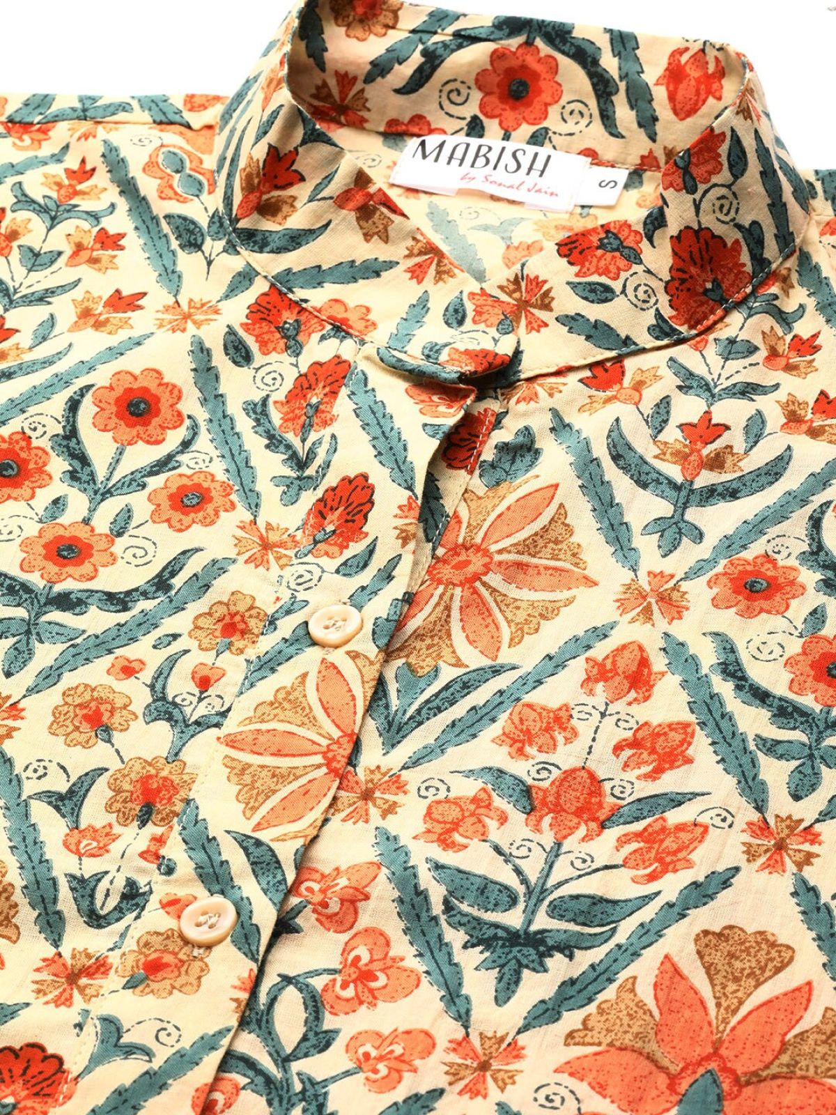MABISH by Sonal Jain Beige & Orange Cotton Printed Kaftan Nightdress