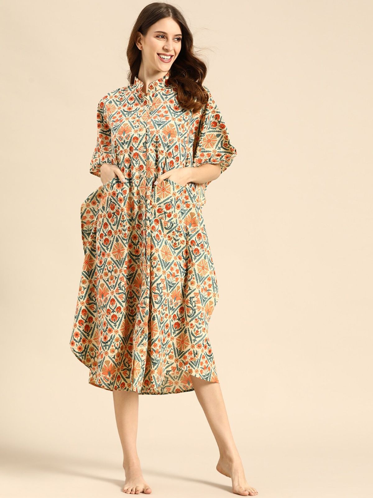 *Check the latest price and availability on the official store.MABISH by Sonal Jain Beige & Orange Cotton Printed Kaftan Nightdress