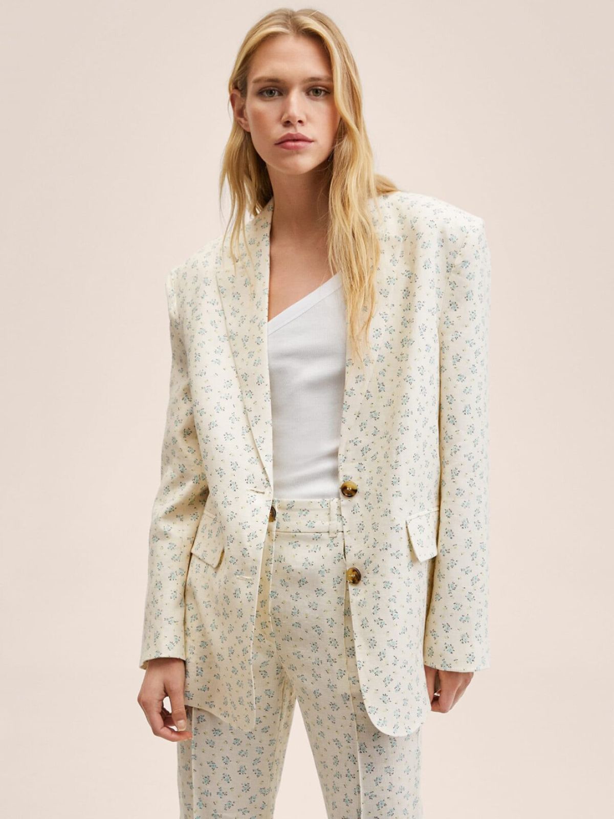 *Check the latest price and availability on the official store.MANGO Women Off-White & Blue Floral Print Oversized Single-Breasted Smart Casual Blazer