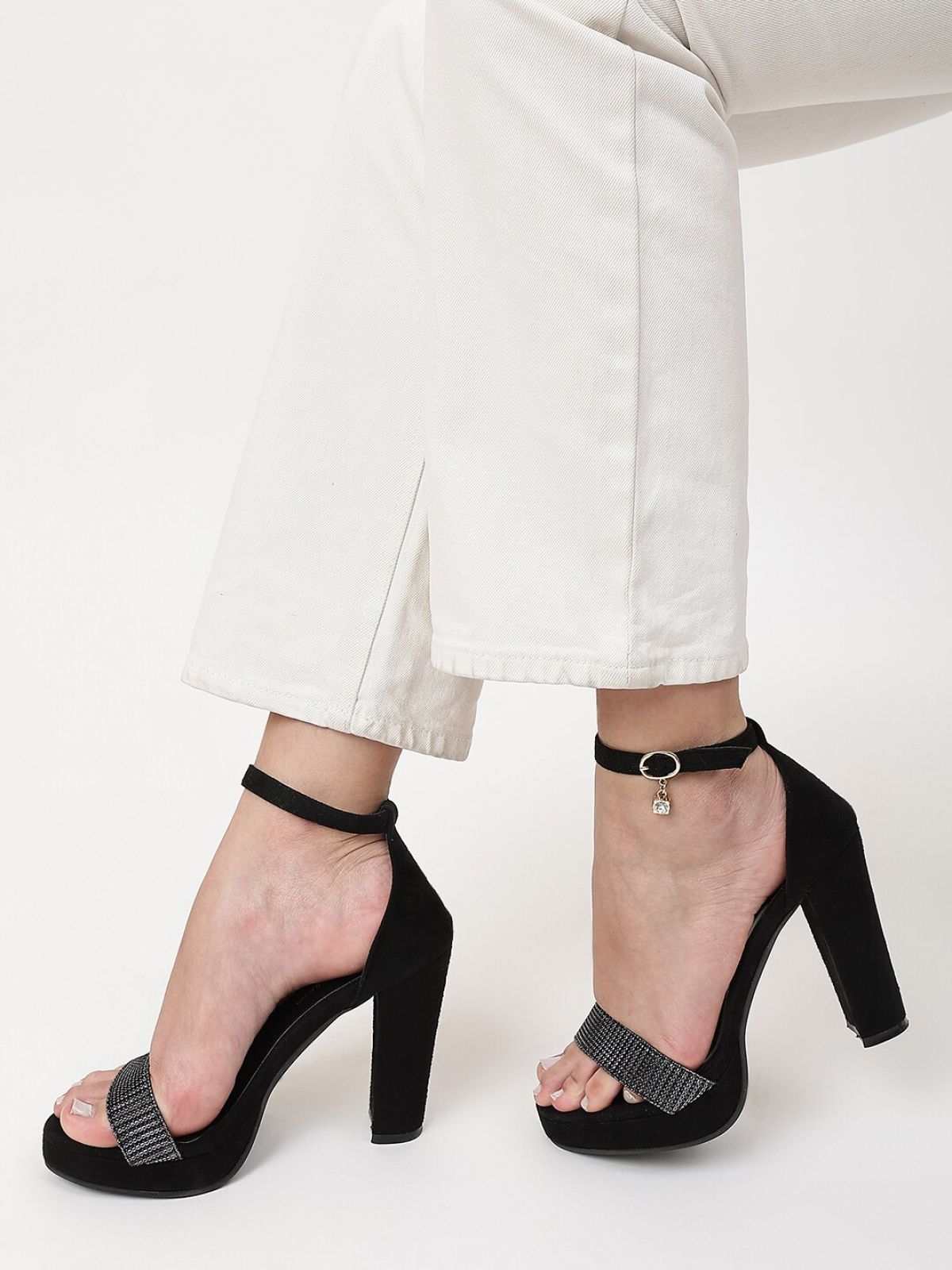 *Check the latest price and availability on the official store.Marc Loire Black Embellished PU Block Sandals