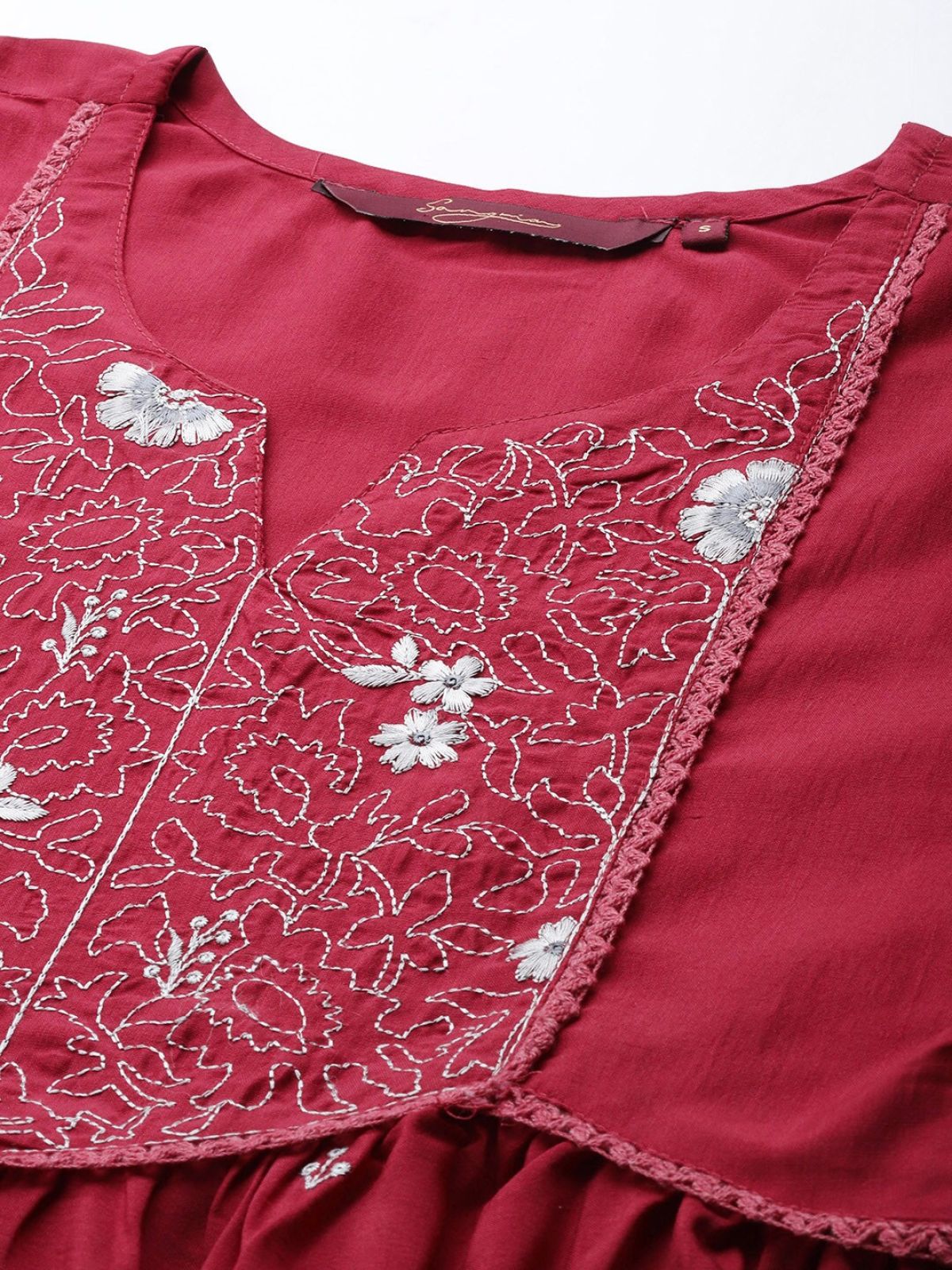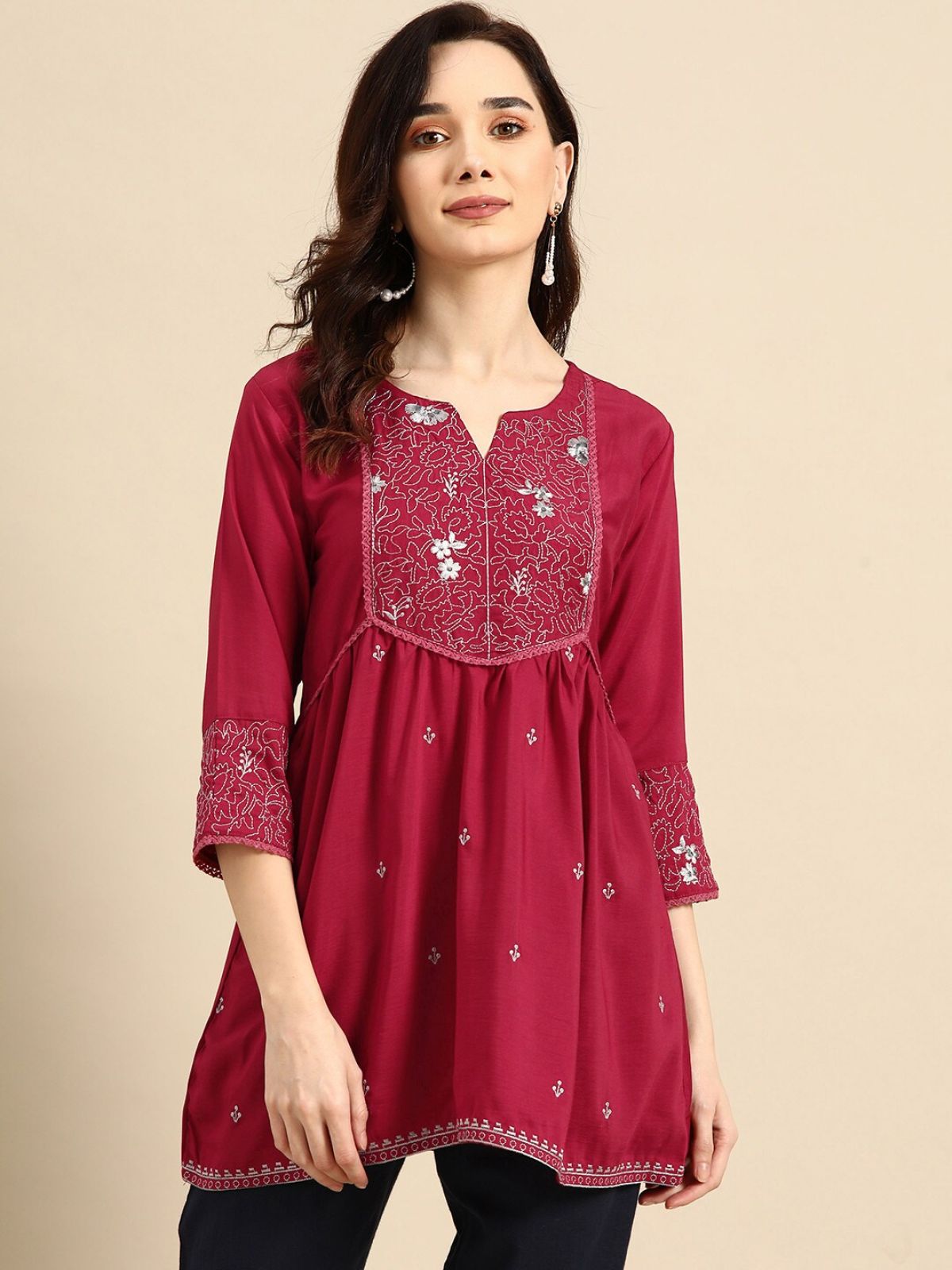 *Check the latest price and availability on the official store.Maroon Embroidered Longline Top (Sangria)