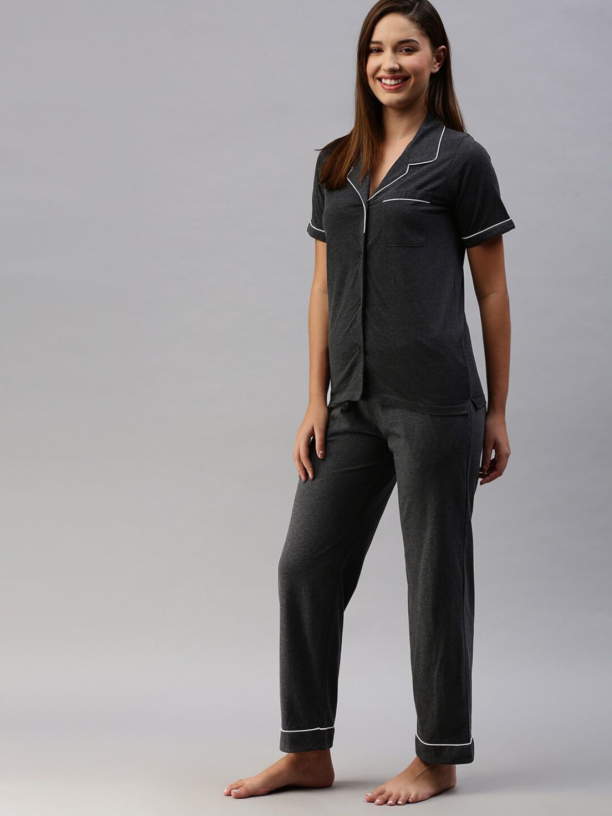 - Charcoal grey night suit consists of shirt and pyjamas