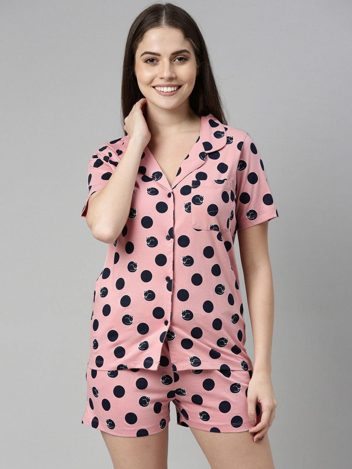 Mast & Harbour Women Pink & Navy Blue Polka Dot Printed Night Suit