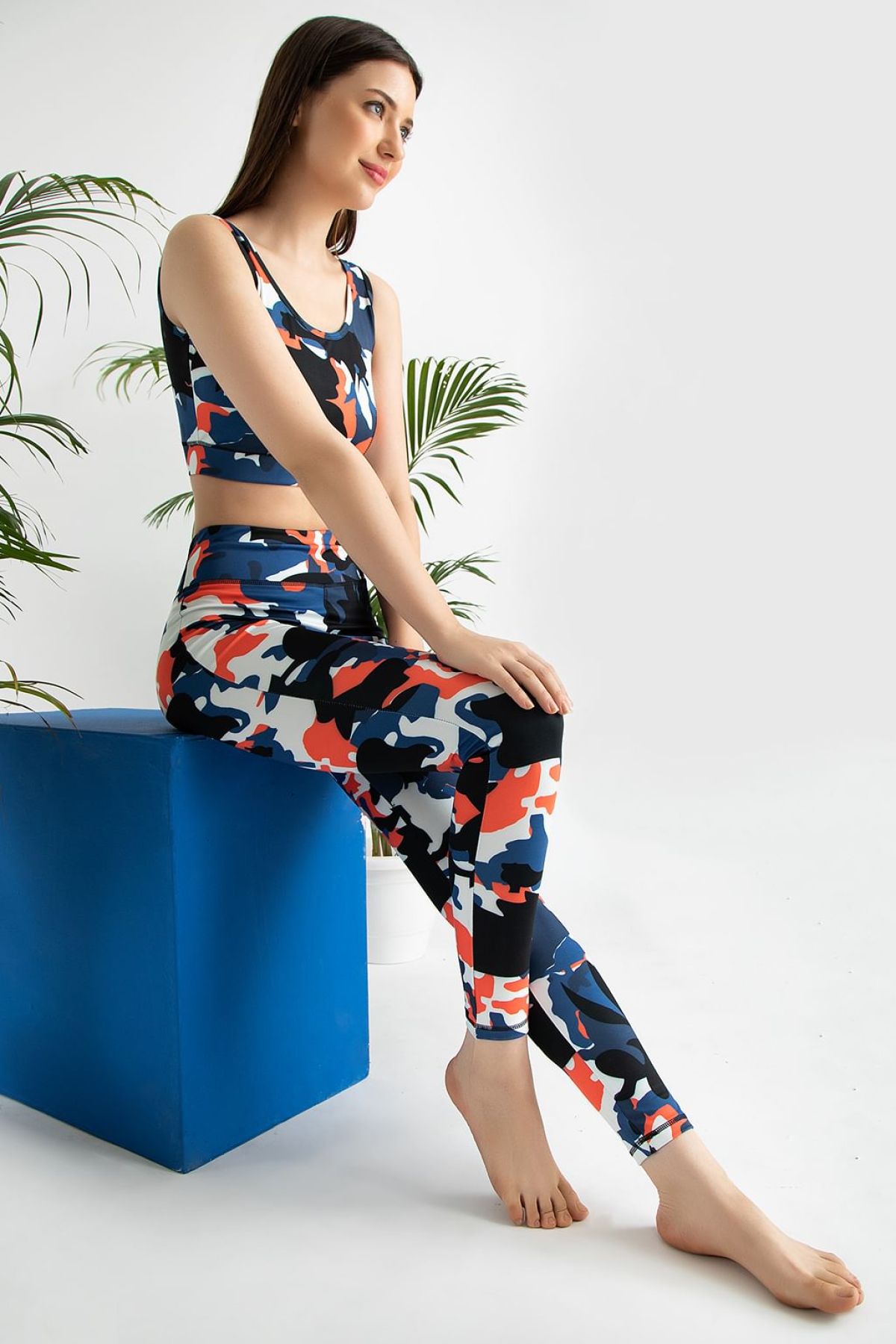 *Check the latest price and availability on the official store.Medium Impact Padded Camouflage Print Sports Bra & Mid-Rise Tights in Blue with Side Pockets