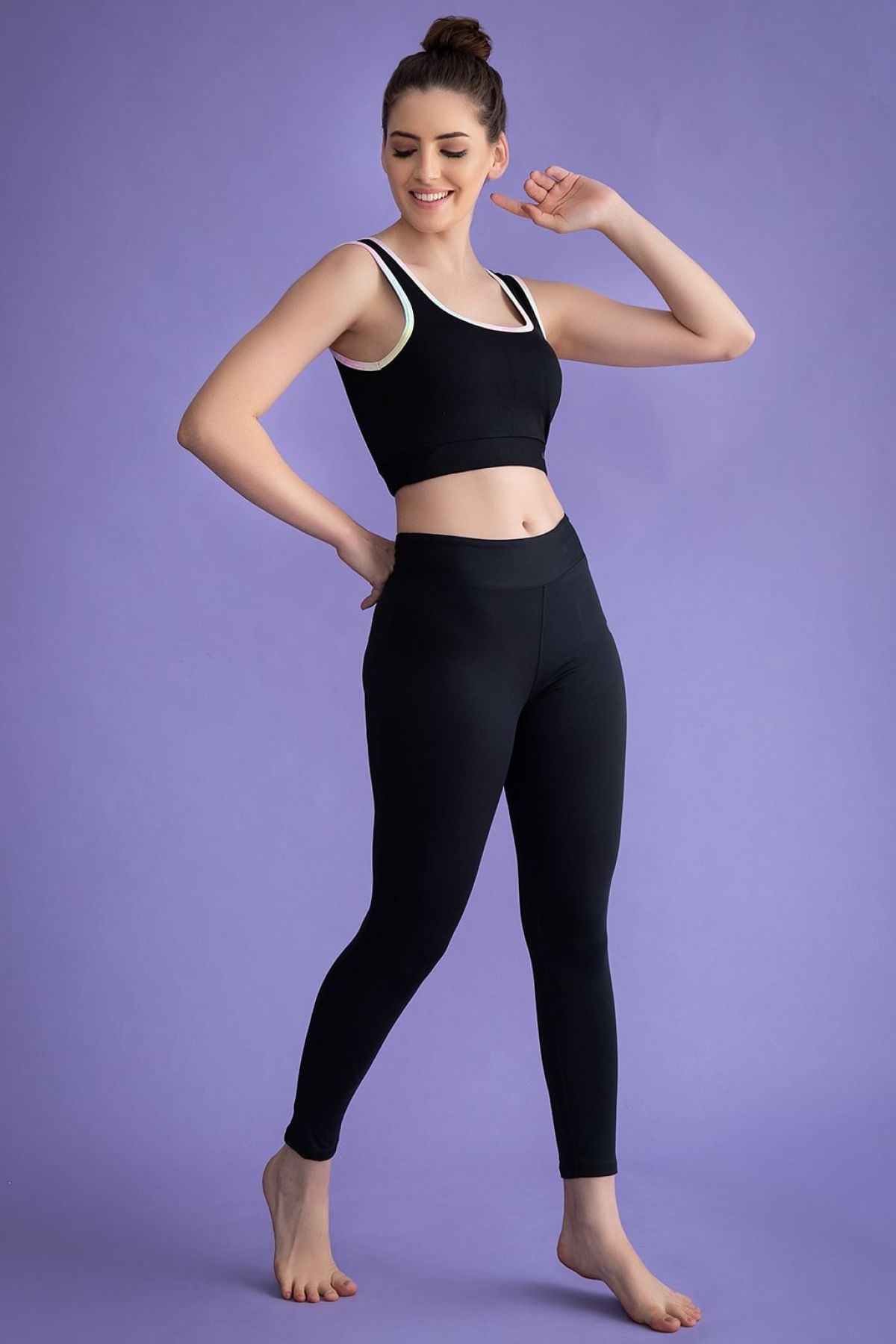 *Check the latest price and availability on the official store.Medium Impact Padded Non-Wired Sports Bra & Snug Fit Ankle-Length Tights in Black