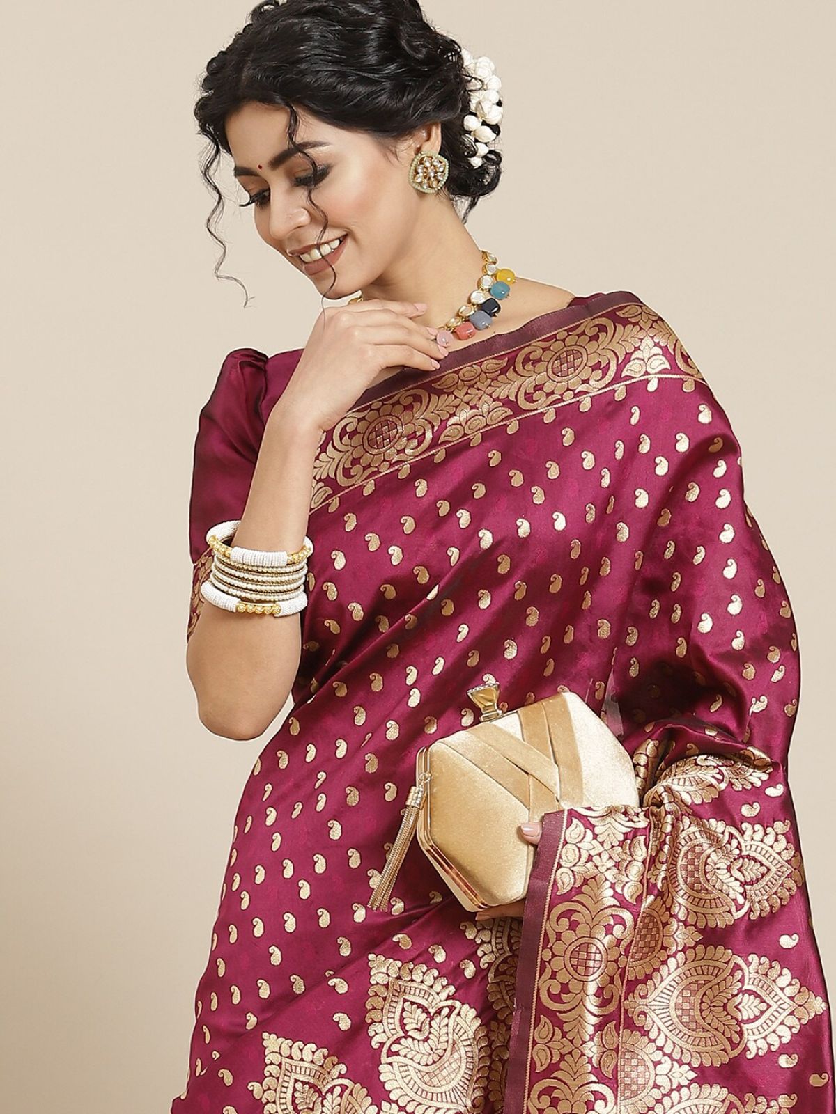*Check the latest price and availability on the official store.Mitera Magenta Floral Zari Silk Blend Kanjeevaram Saree