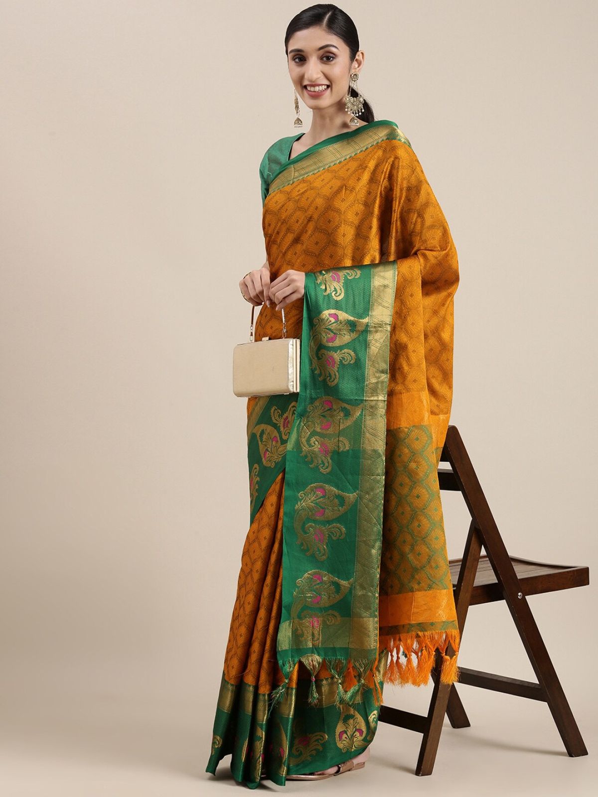 - Mustard yellow banarasi saree