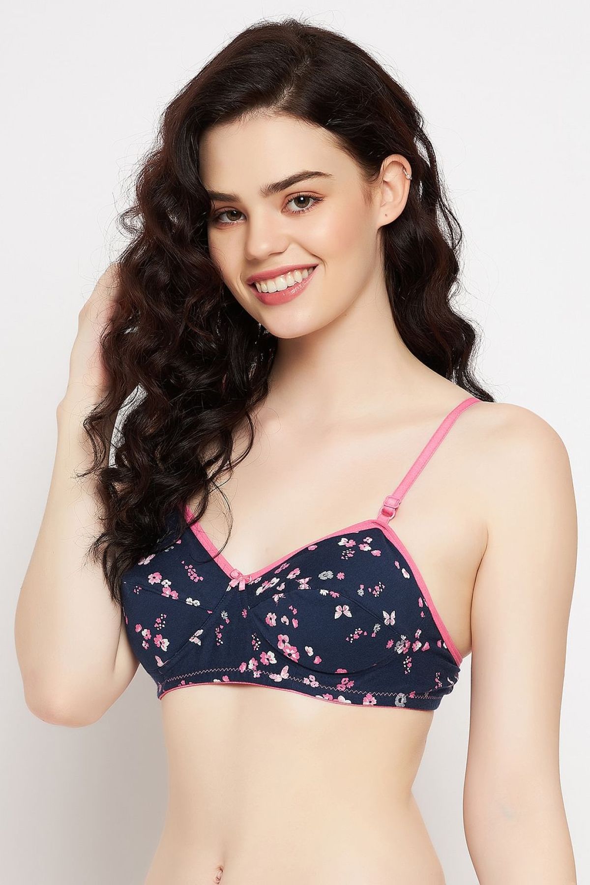 *Check the latest price and availability on the official store.Non-Padded Non-Wired Full Cup Floral Print Balconette Bra in Navy - Cotton