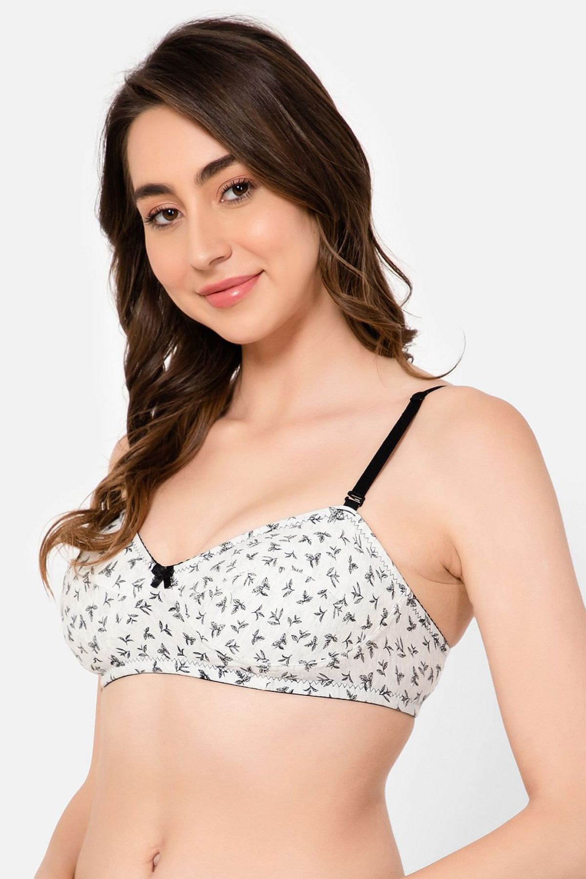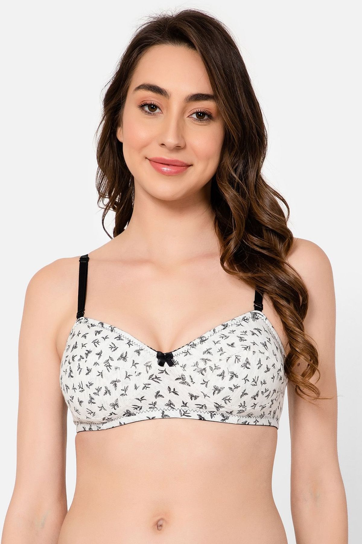 *Check the latest price and availability on the official store.Non-Padded Non-Wired Full Cup Leaf Print Balconette Bra in White - Cotton