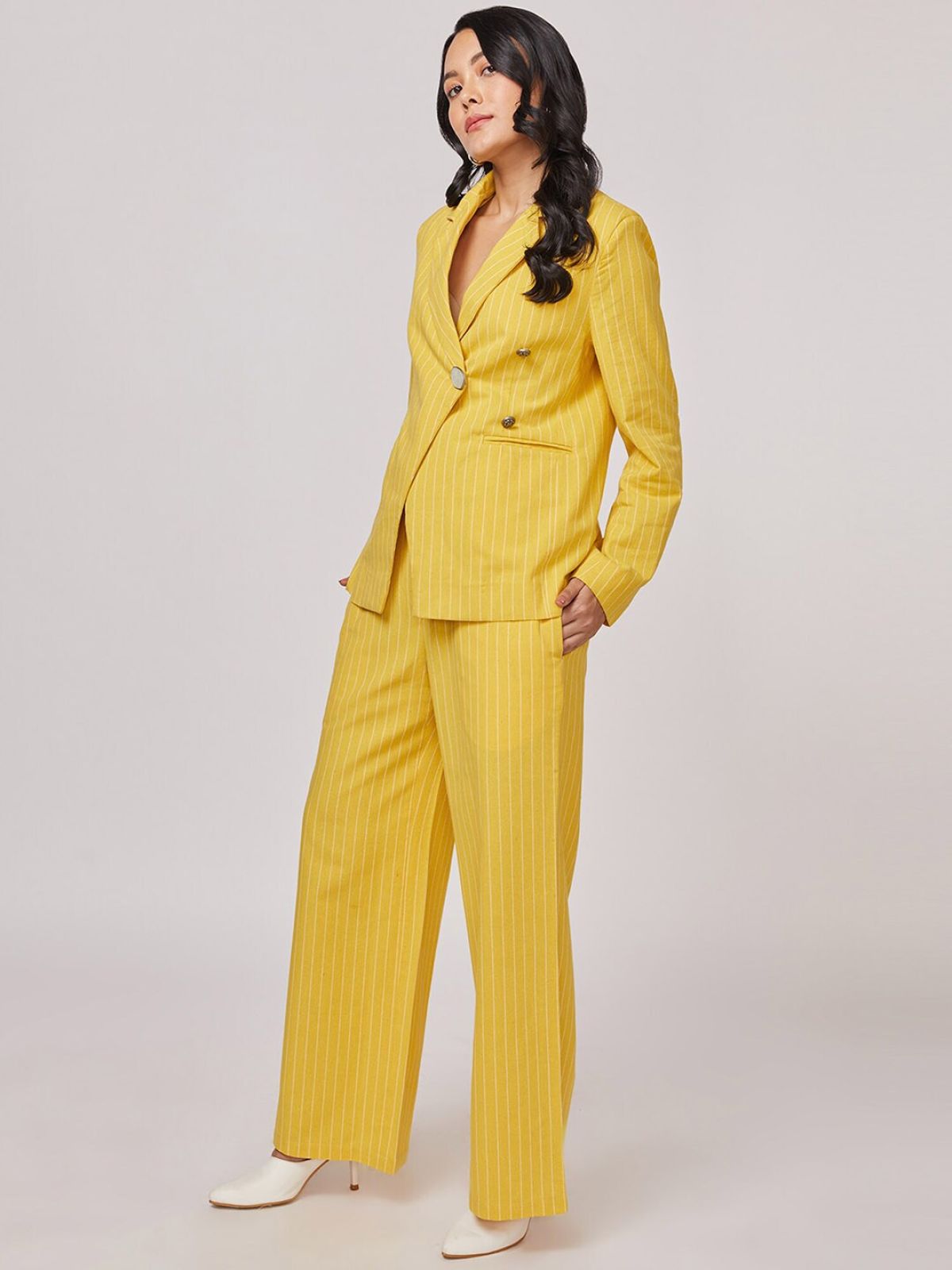 *Check the latest price and availability on the official store.NOT SO PINK Women Mustard Yellow Striped Single-Breasted Overlap Blazer