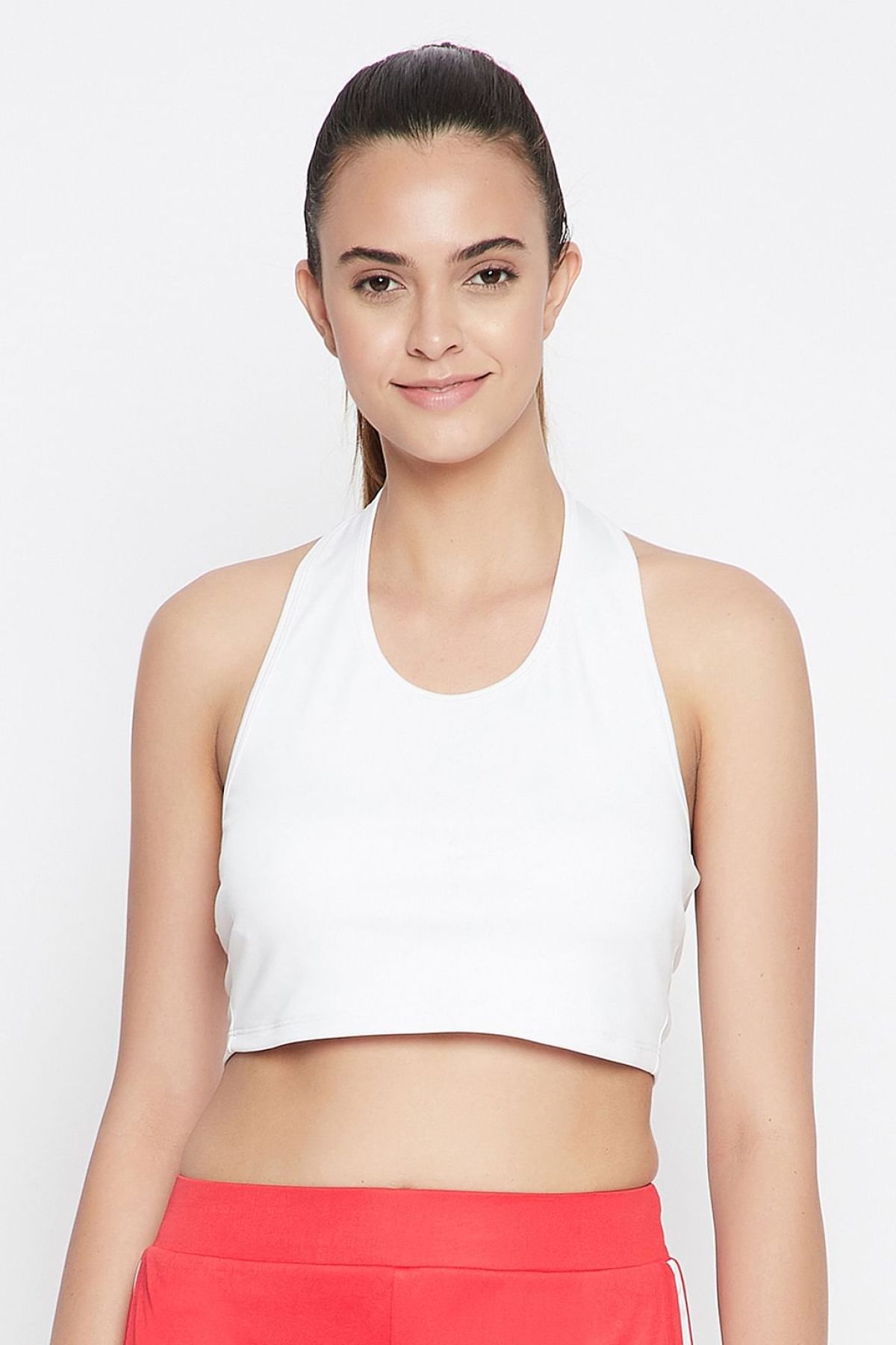 *Check the latest price and availability on the official store.Padded Active Crop Top in White with Halter Neck