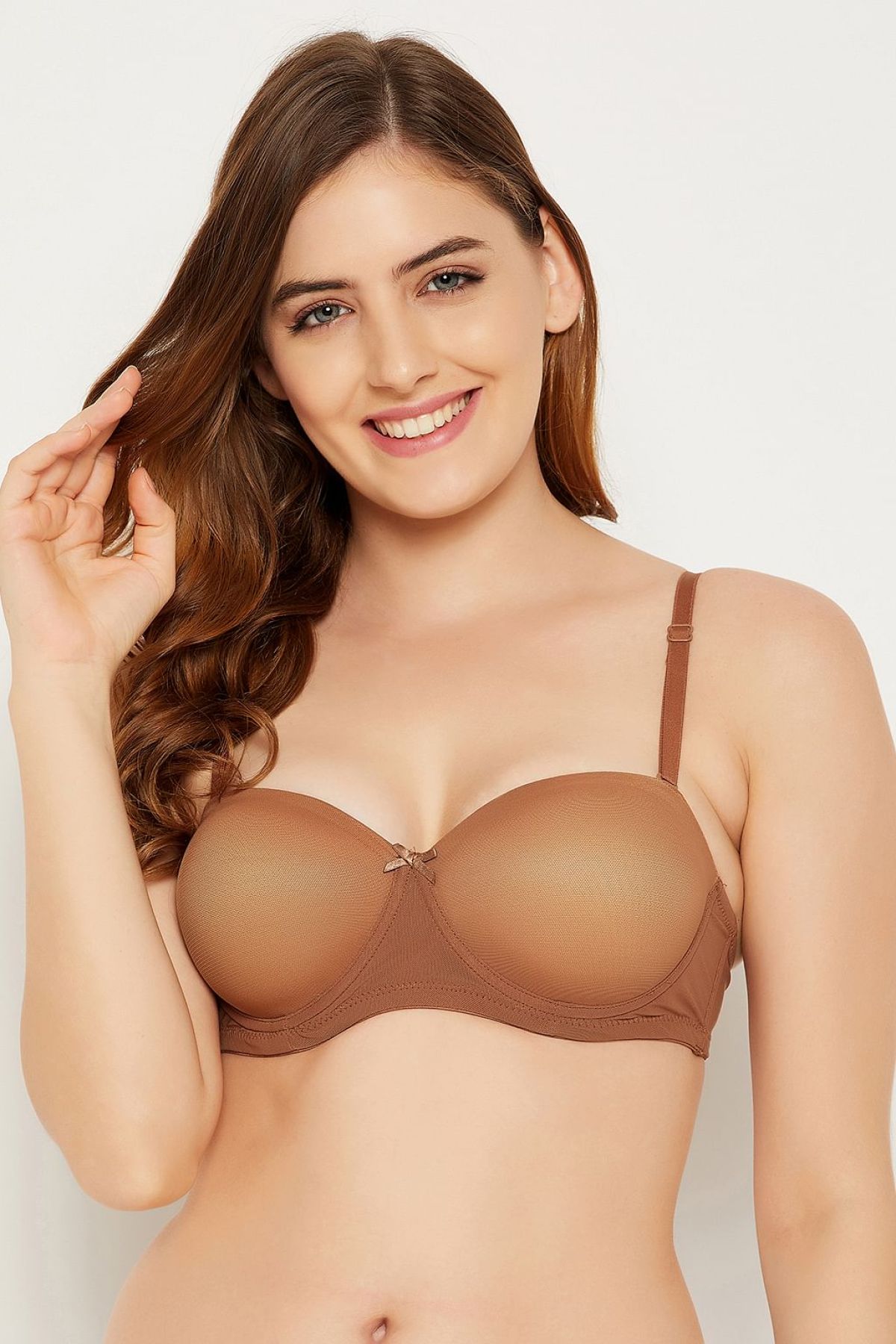 - Nude colour strapless balconette bra crafted with soft powernet fabric.