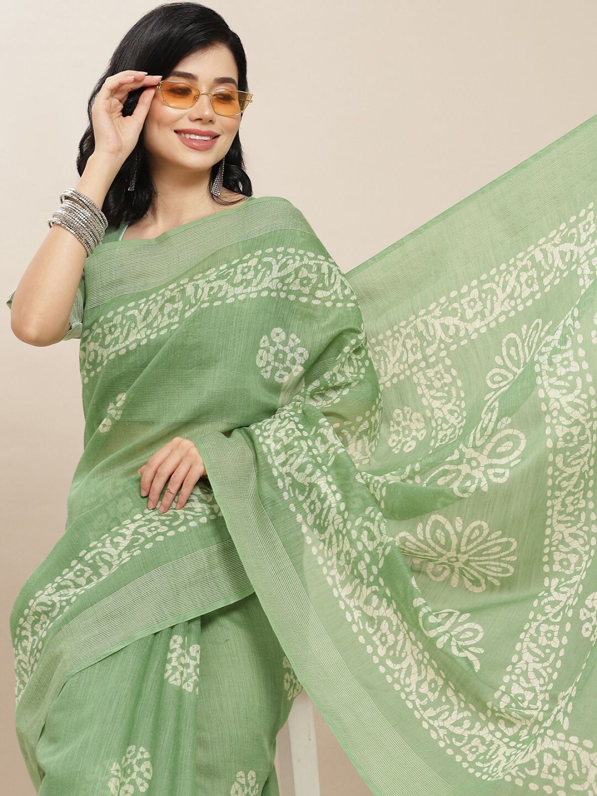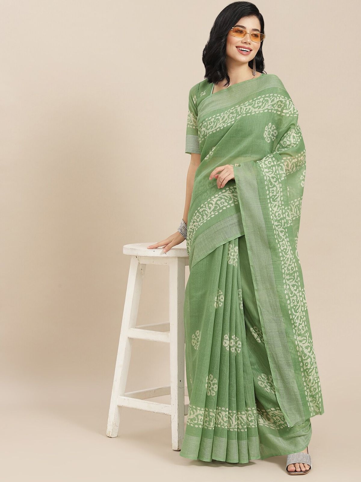 *Check the latest price and availability on the official store.RAJGRANTH Green & Off White Ethnic Motifs Linen Cotton Saree