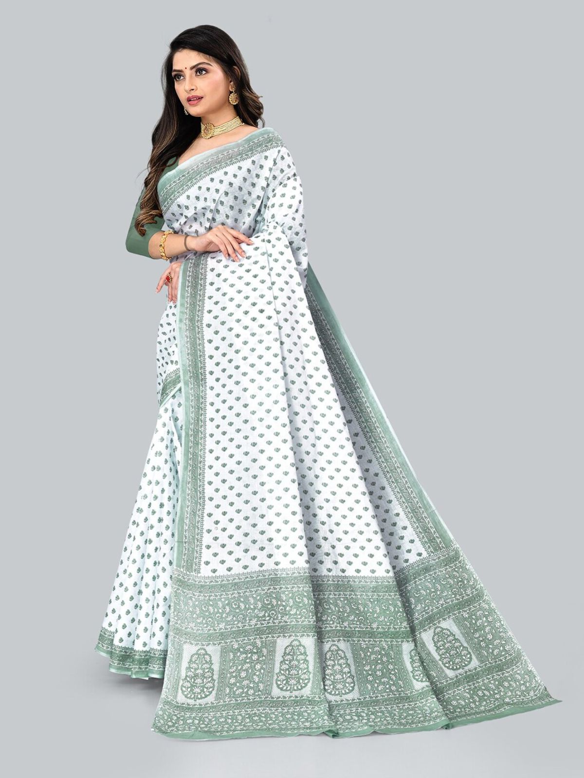 - White and green saree