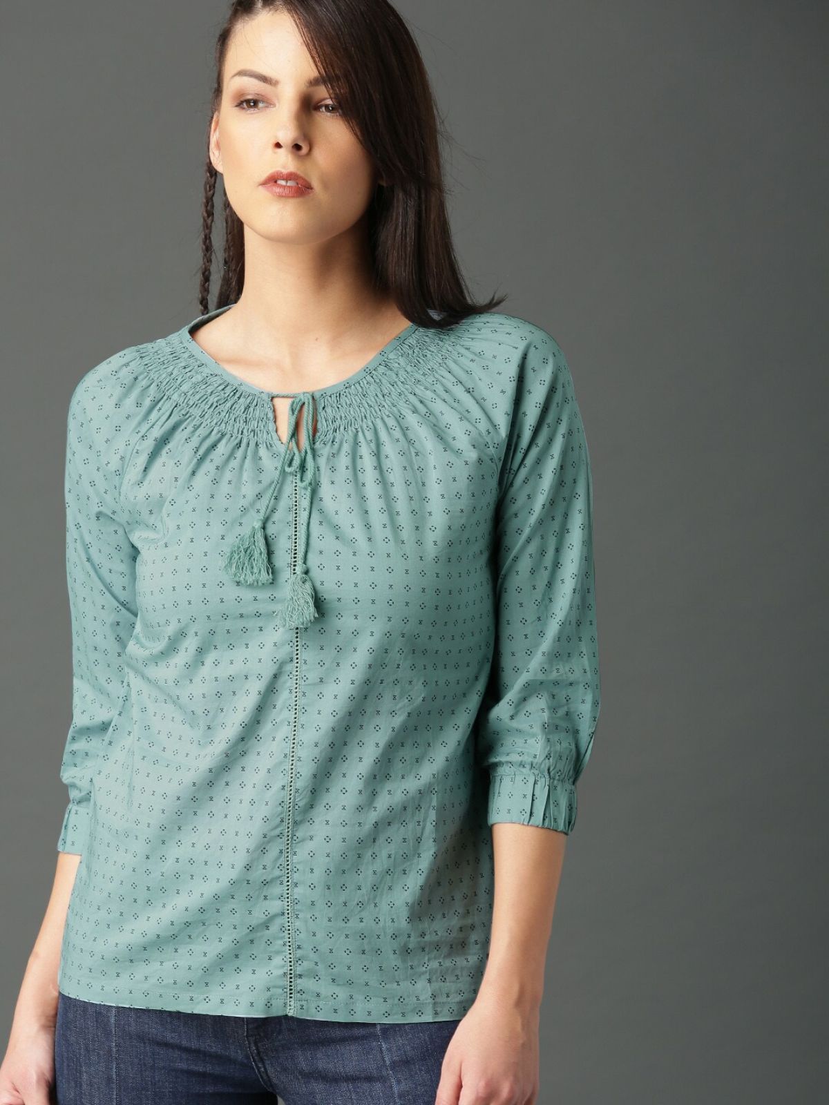 *Check the latest price and availability on the official store.Roadster Blue Geometric Smocked Pure Cotton Top