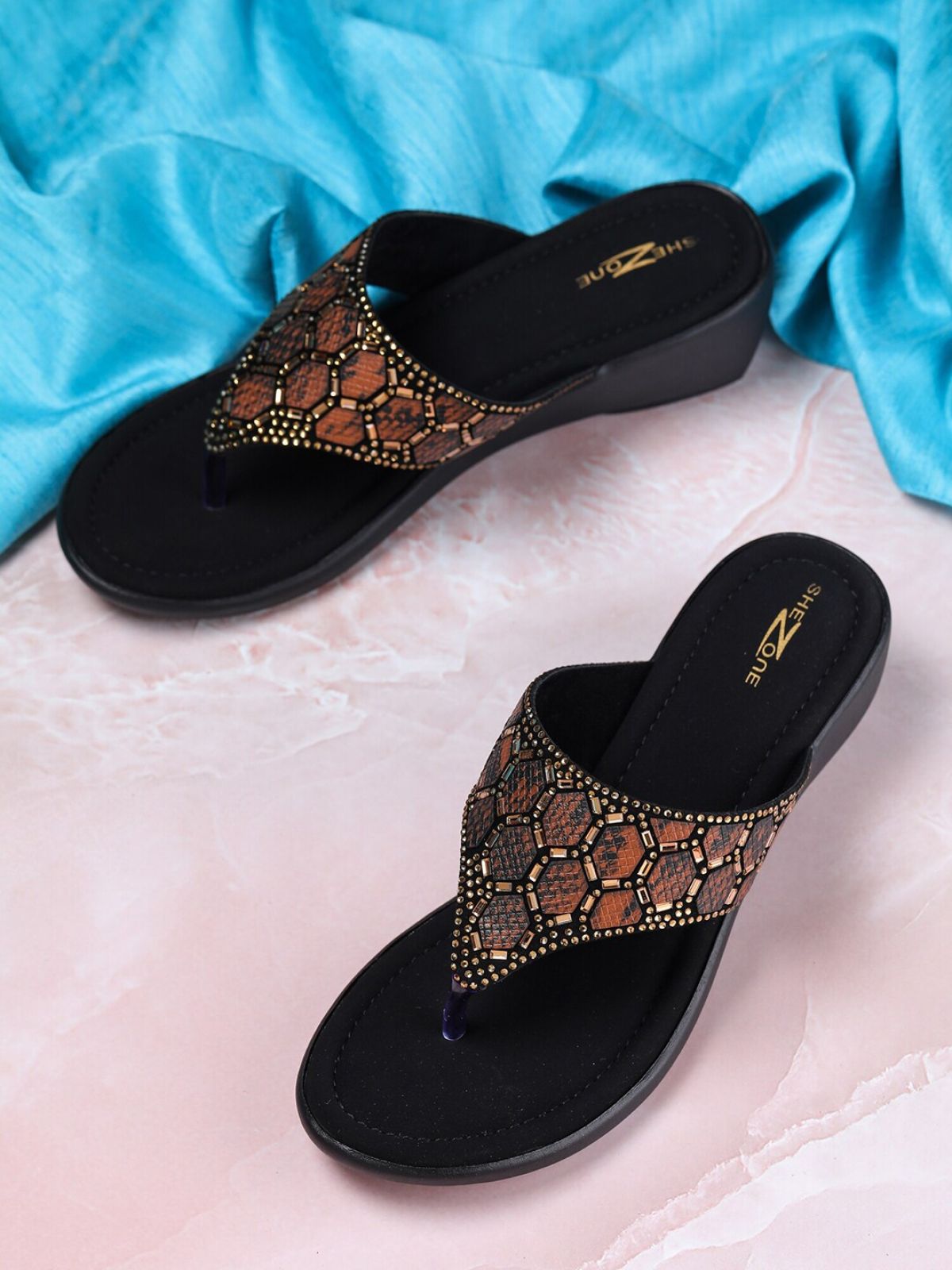 *Check the latest price and availability on the official store.Shezone Copper-Toned Embellished Wedge Heeled Sandals