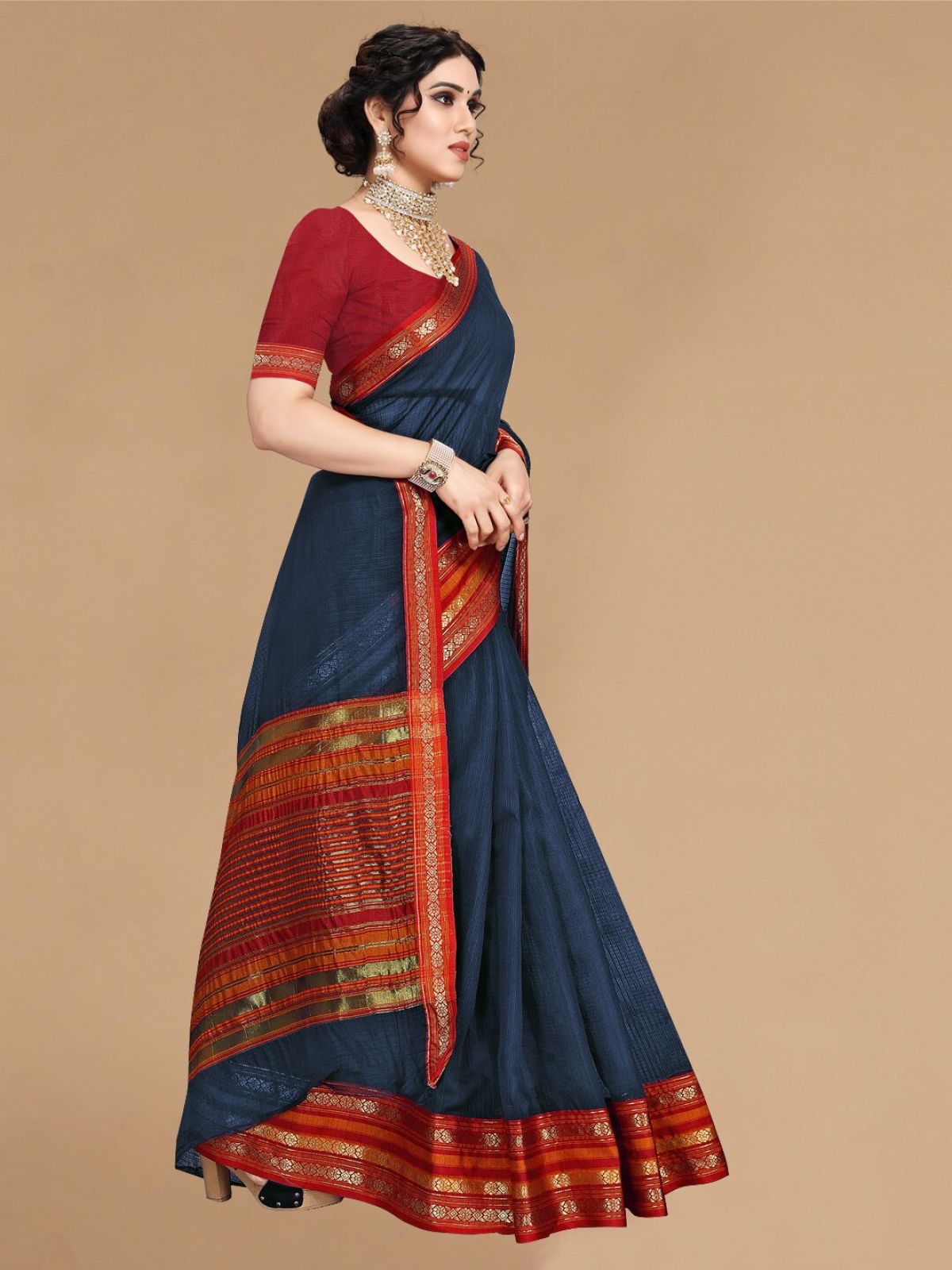 - Blue and red kota saree