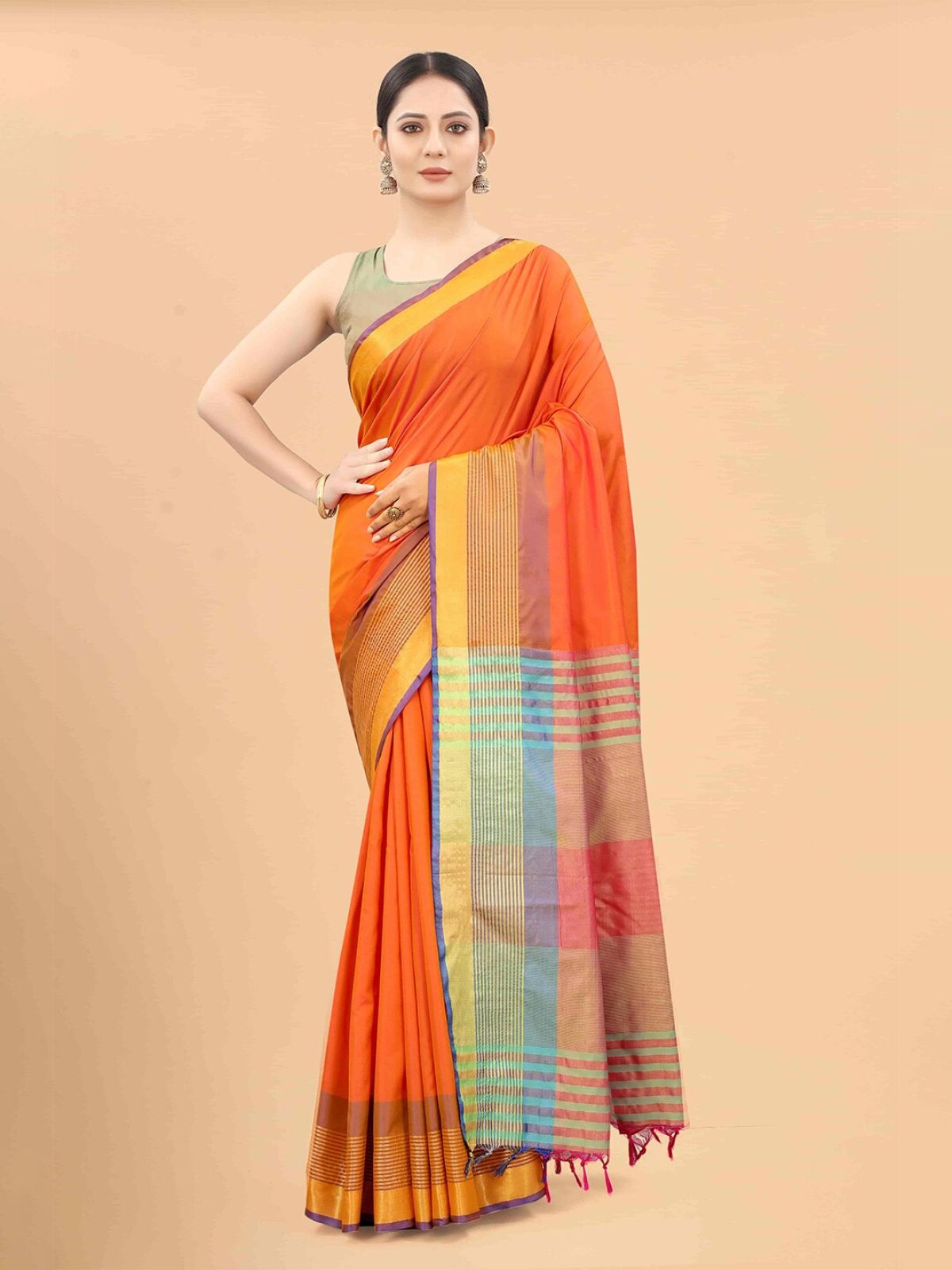 - Orange and blue arani saree