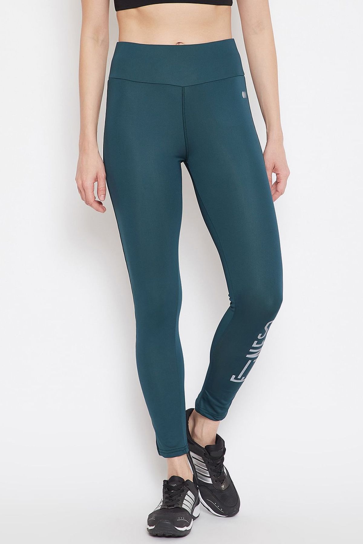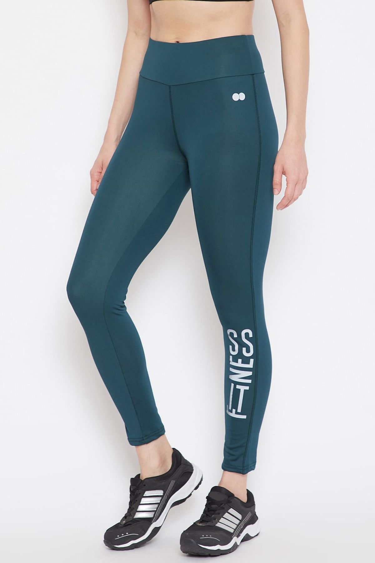 *Check the latest price and availability on the official store.Snug Fit Active Ankle-Length Text Print Tights in Teal