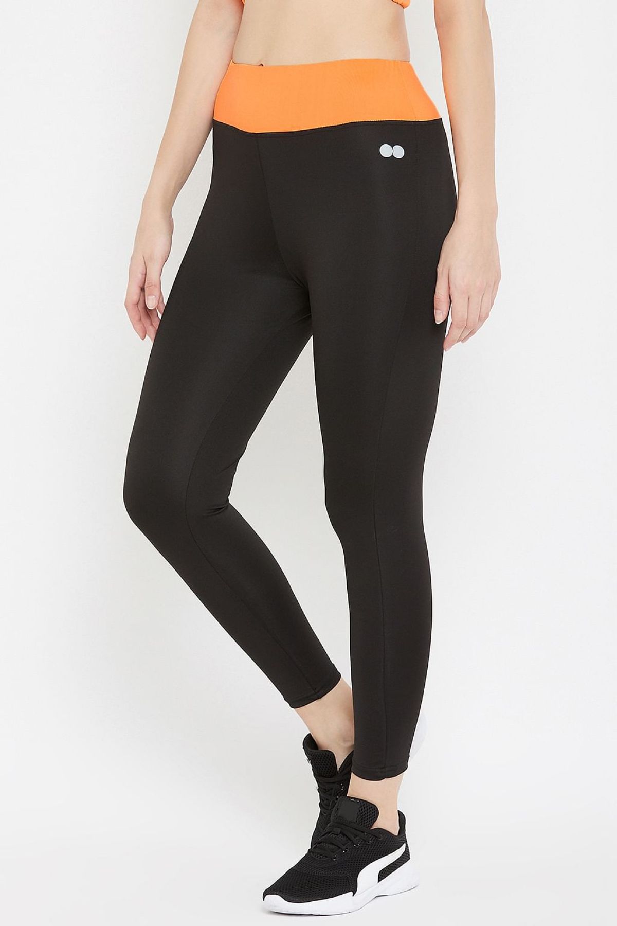 - Black snug fit ankle-length tights crafted with soft moisture wicking polyamide fabric.