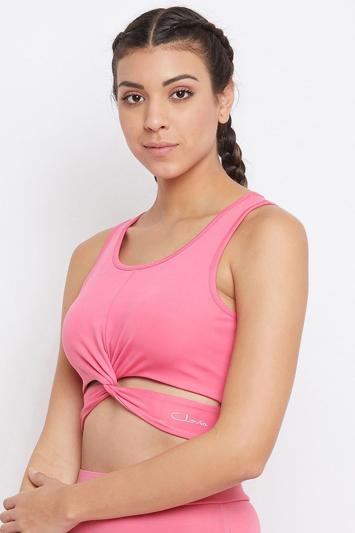 *Check the latest price and availability on the official store.Snug Fit Active Crop Top with Twist Knot in Baby Pink