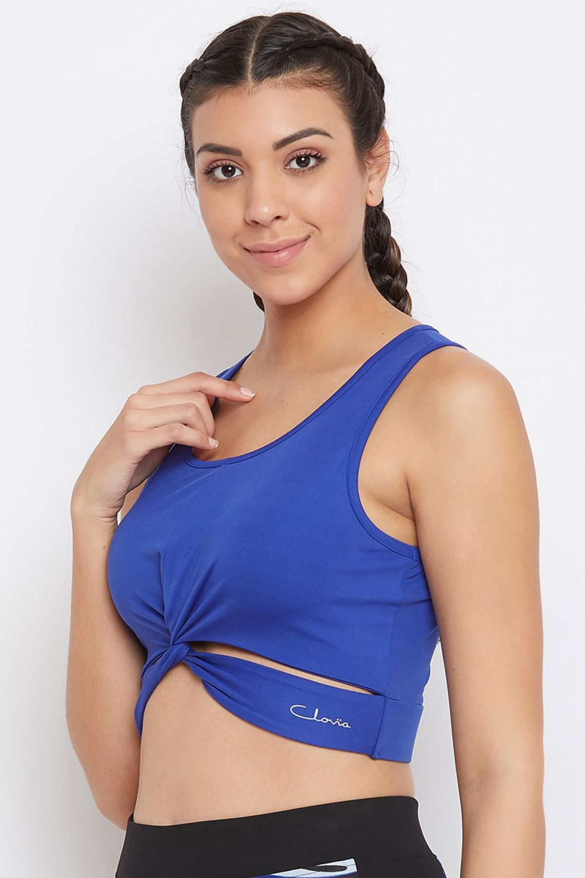 Snug Fit Active Crop Top with Twist Knot in Blue